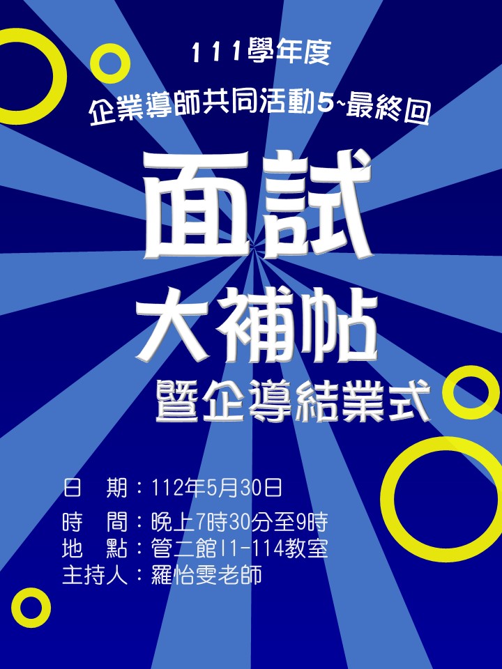 111學年度企業導師【結業式暨共同活動5最終回~面試大補帖】