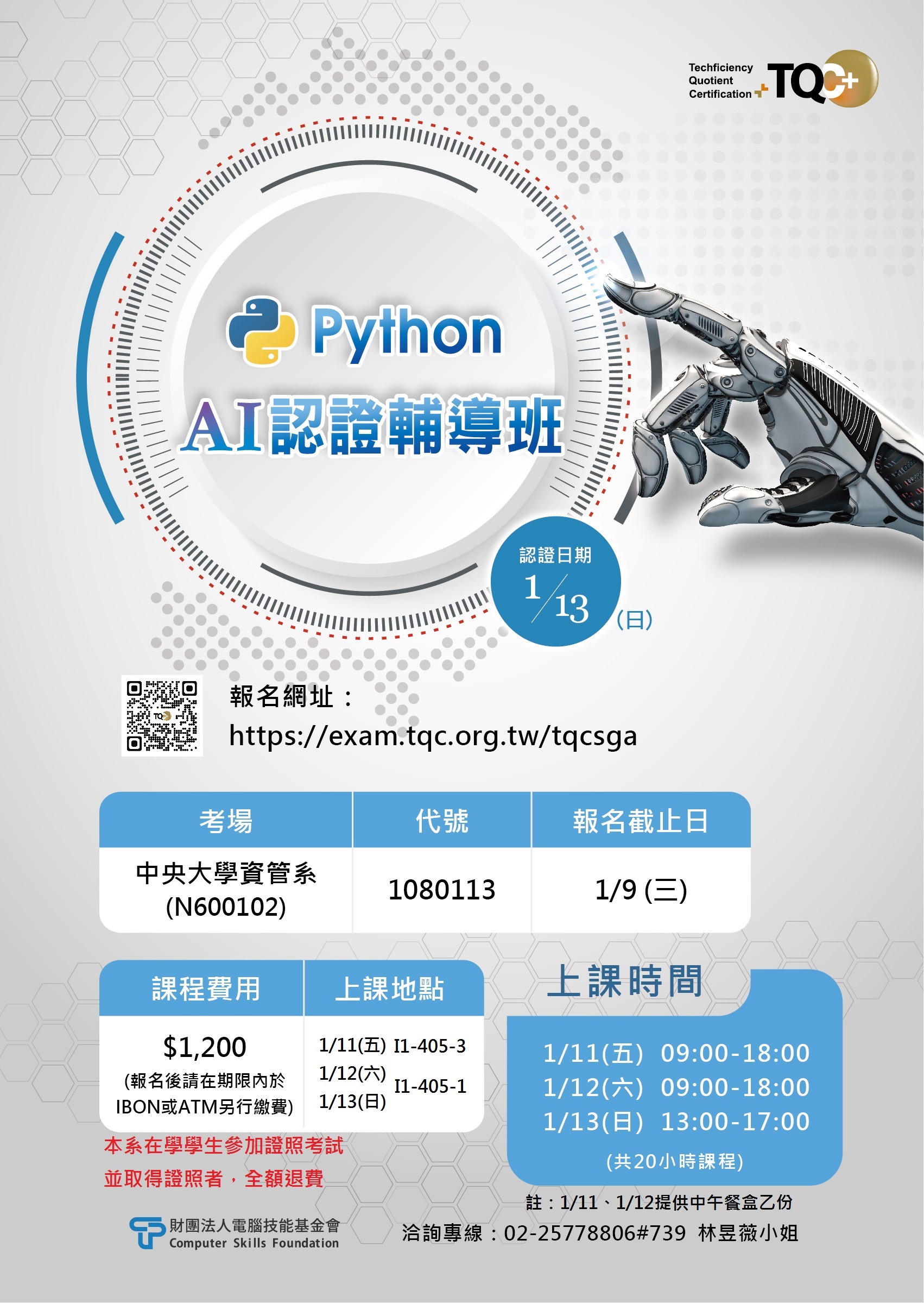 上課日期:1/11、1/12、1/13,共20小時