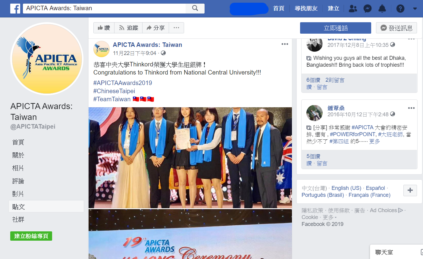 臺灣區競賽FB粉絲頁:https://www.facebook.com/APICTATaipei/