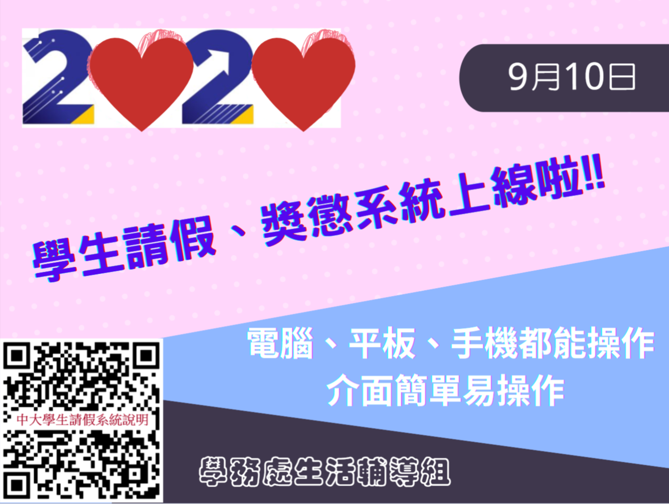 本校學生請假系統、獎懲操行系統訂於9月10日(四)上午10時正式上線
