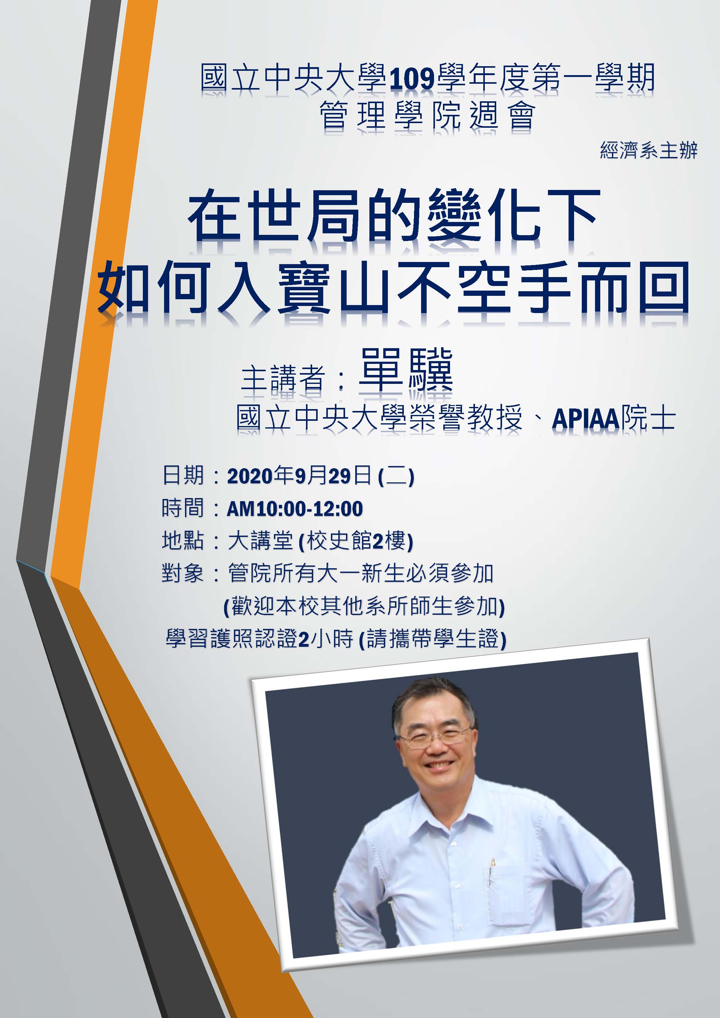 主講者:單驥 (國立中央大學榮譽教授、APIAA院士)