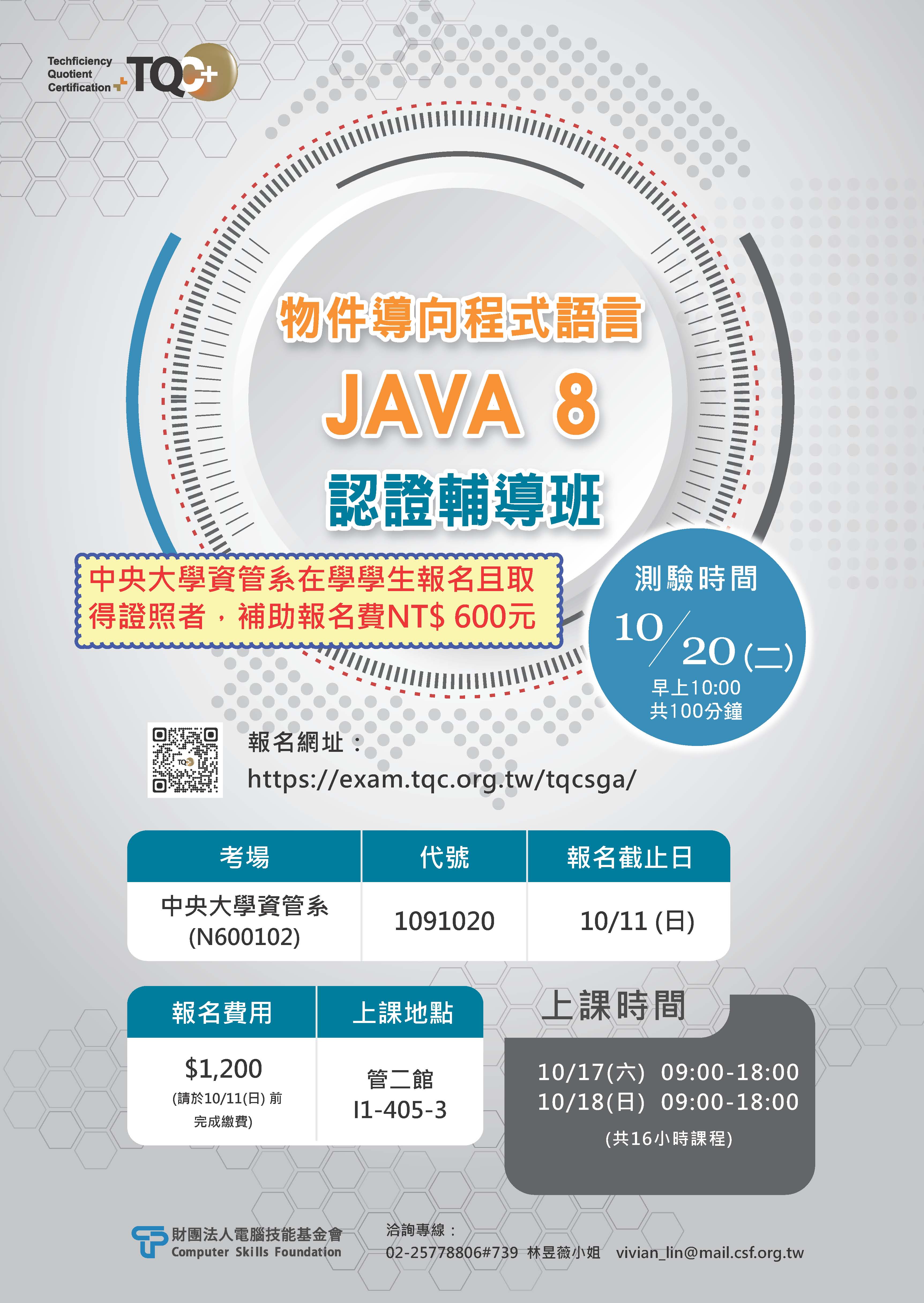 TQC+Java 8物件導向程式語言認證輔導班 教育訓練及考照
