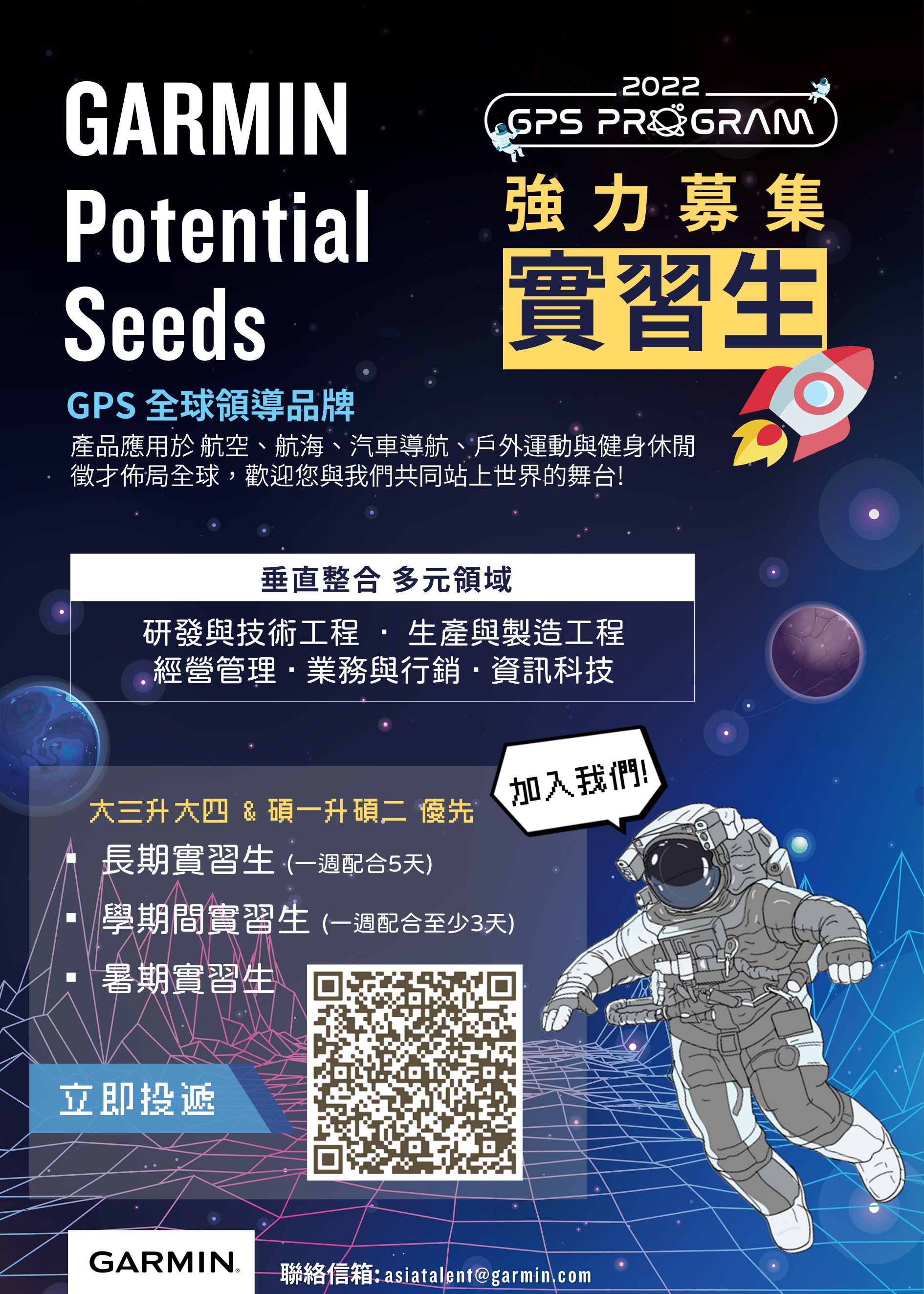Garmin 2022 GPS實習計畫正式啟動招募!!!