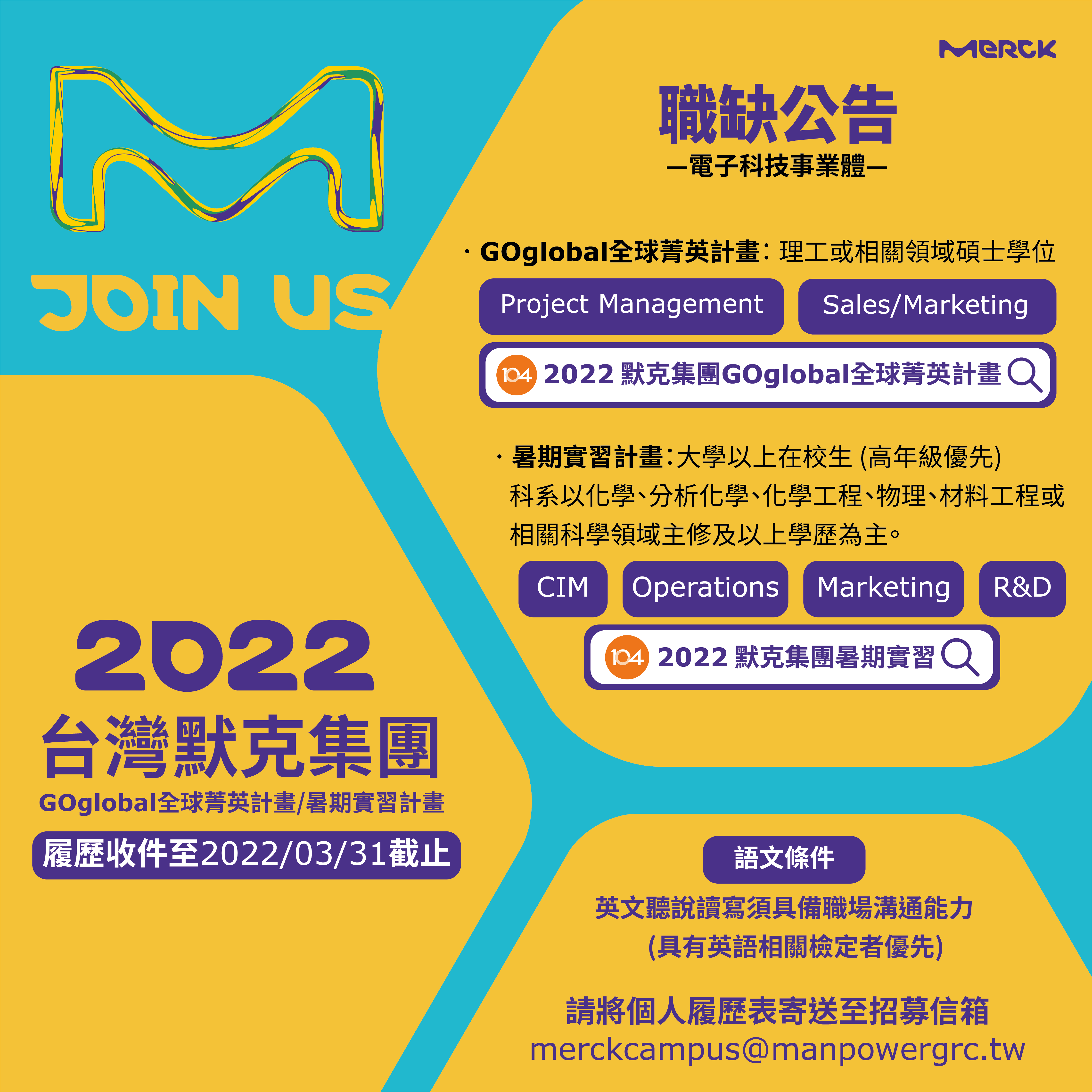 【2022台灣默克集團招募計畫|職缺公告】