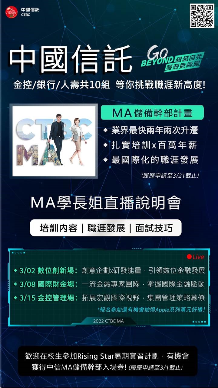 【徵才】中信金控MA儲備幹部計畫熱烈招募中!