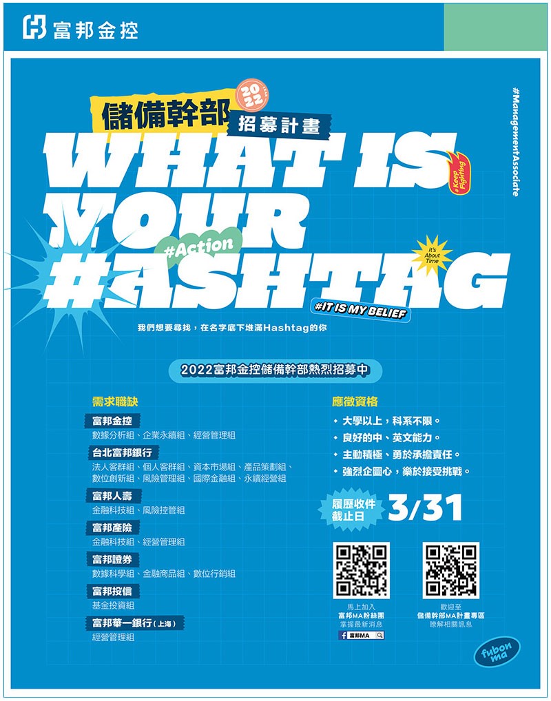 【2022年富邦金控MA儲備幹部計畫】 已開放申請至3/31(四)截止!