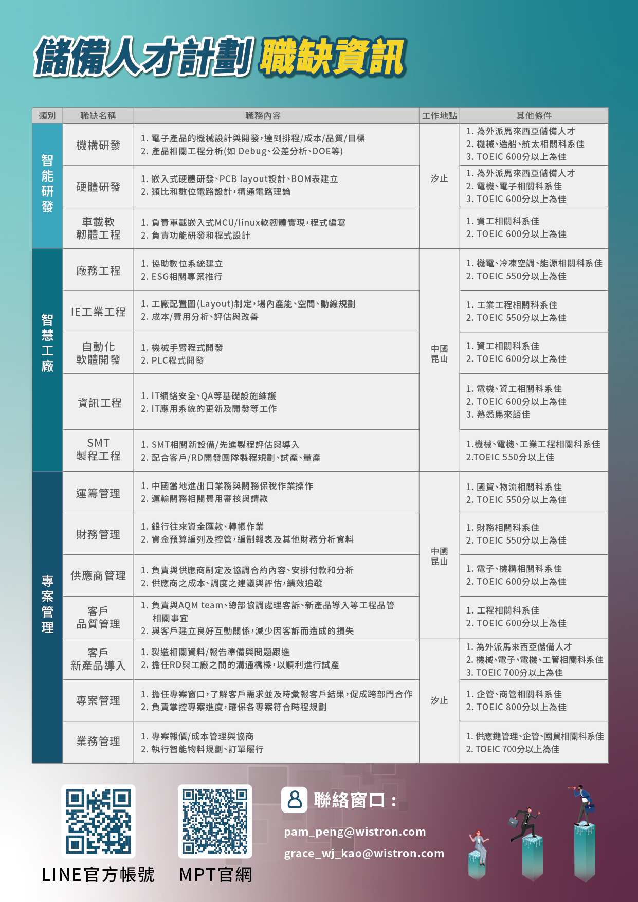 HR Grace 高小姐 E-mail:grace_wj_kao@wistron.com