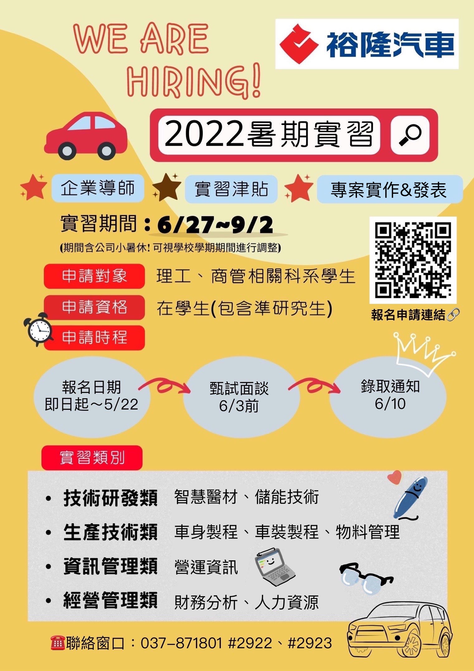 【實習】裕隆汽車製造(股)公司「2022暑期實習計畫」