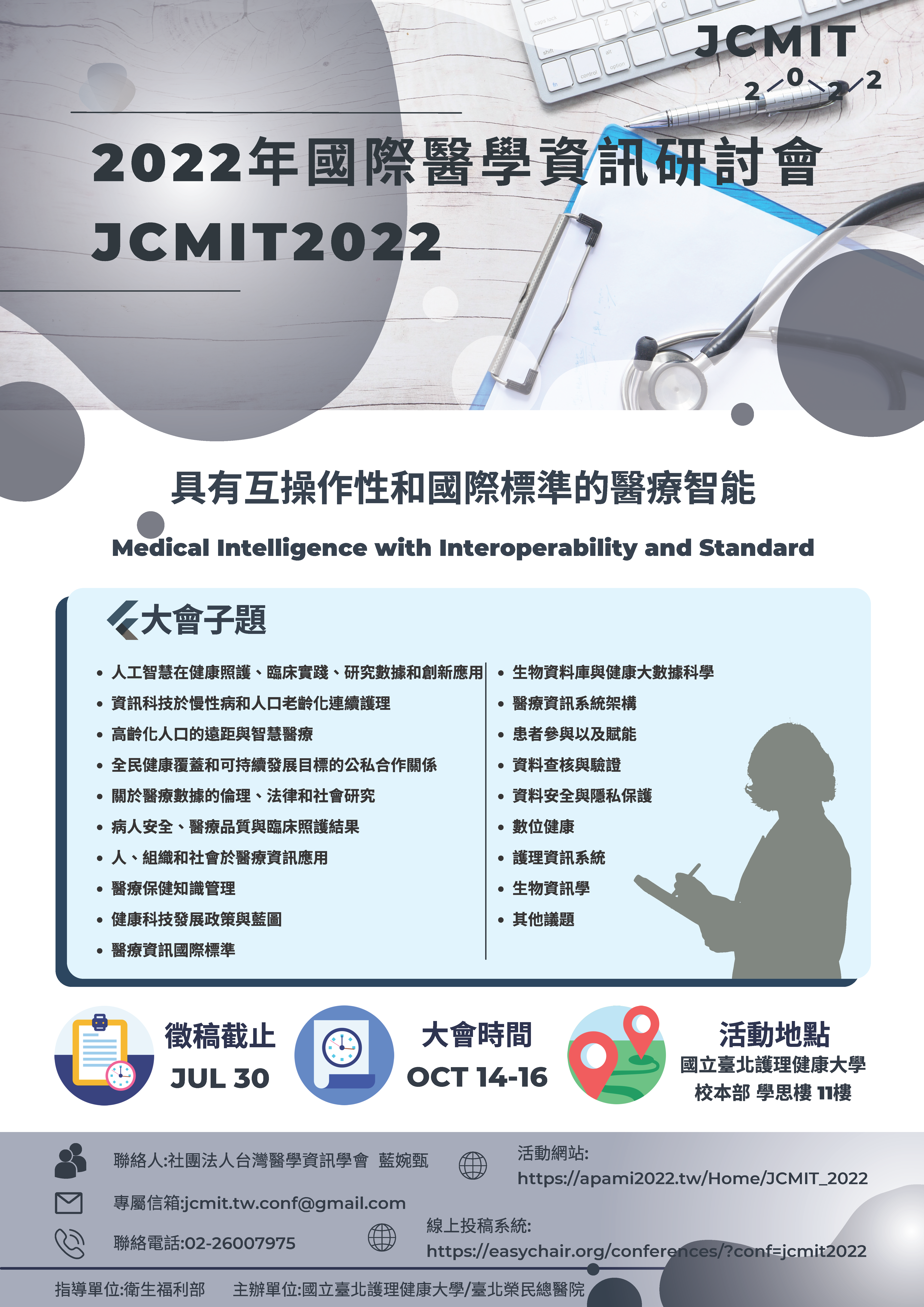 2022第12屆亞太地區醫療資訊年會,即日起開始徵稿至7/30,歡迎踴躍投稿。