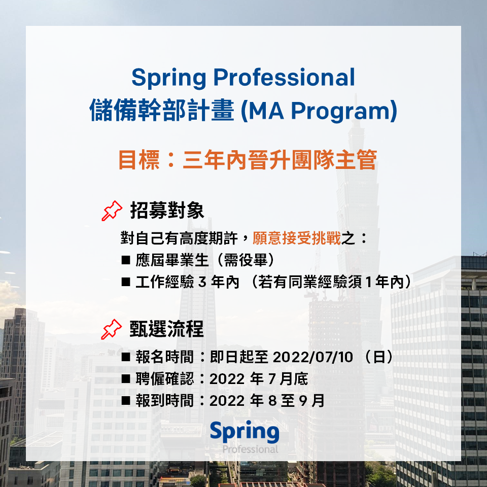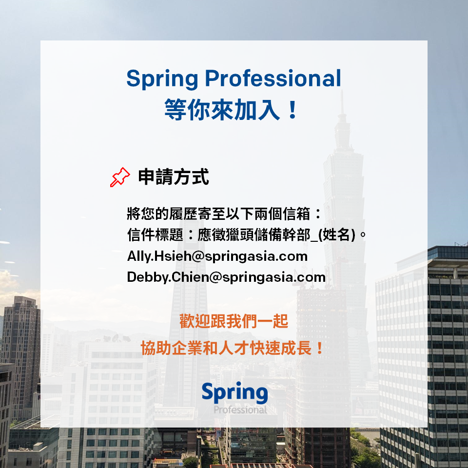 【徵才】藝珂集團旗下 Spring Professional 獵頭儲備幹部計畫