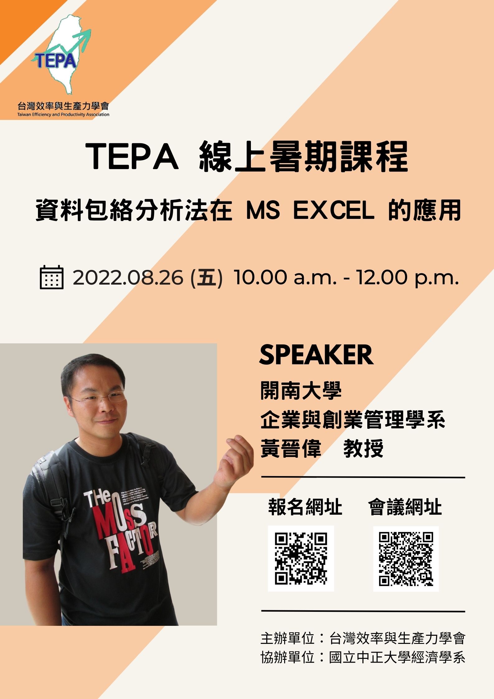 台灣效率與生產力學會(TEPA)邀請參加2022 TEPA 暑期線上課程。
