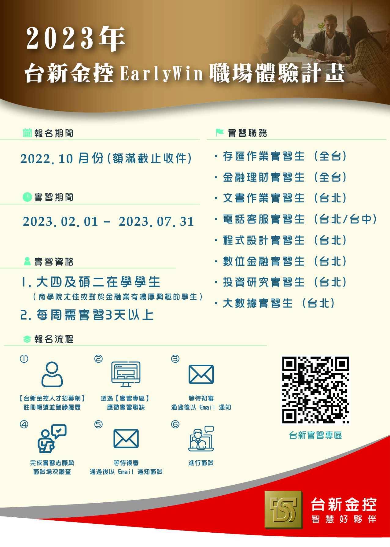 【實習】台新金控─2023年 Early Win 職場體驗計畫(半年期)開始甄選囉!