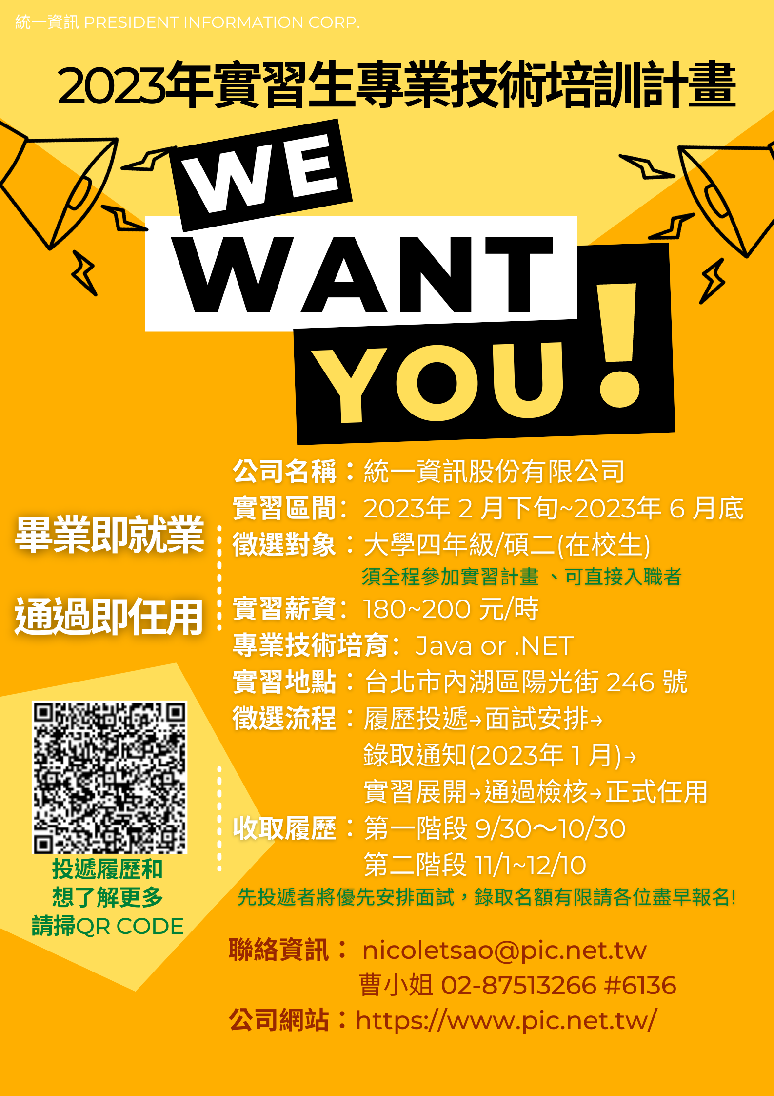 【徵才】統一資訊2023年專業技術培訓計畫-線上說明會&招募資訊