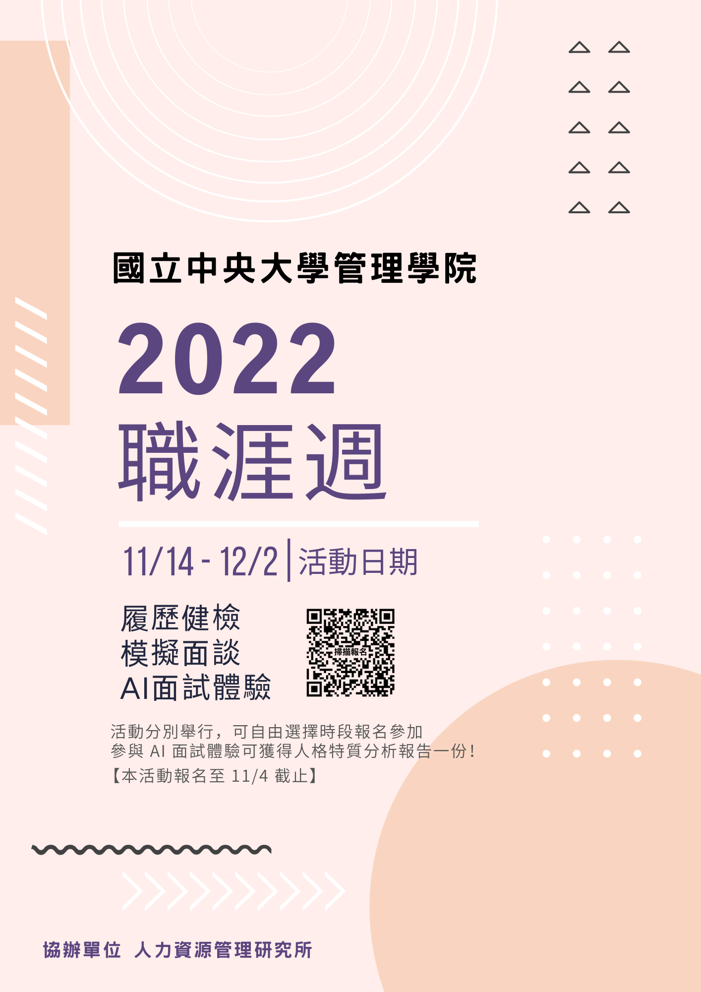 今年的管院職涯週除了講座分享之外,還安排了履歷健診、模擬面談、AI面試體驗,保證有以下三點好康: