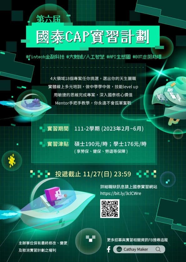 國泰集團在每學年度的下學期,都會特別針對【科技、數位金融】領域舉辦【國泰敏捷計畫】,