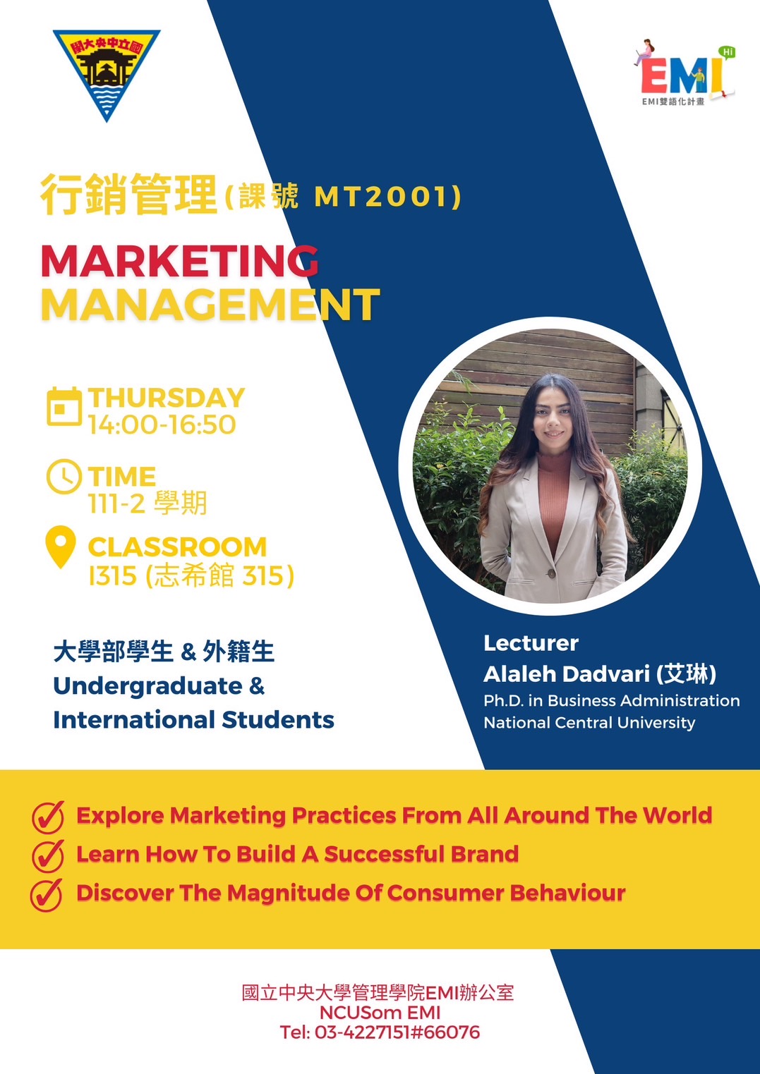 - 授課教師:Alaleh Dadvari(艾琳)