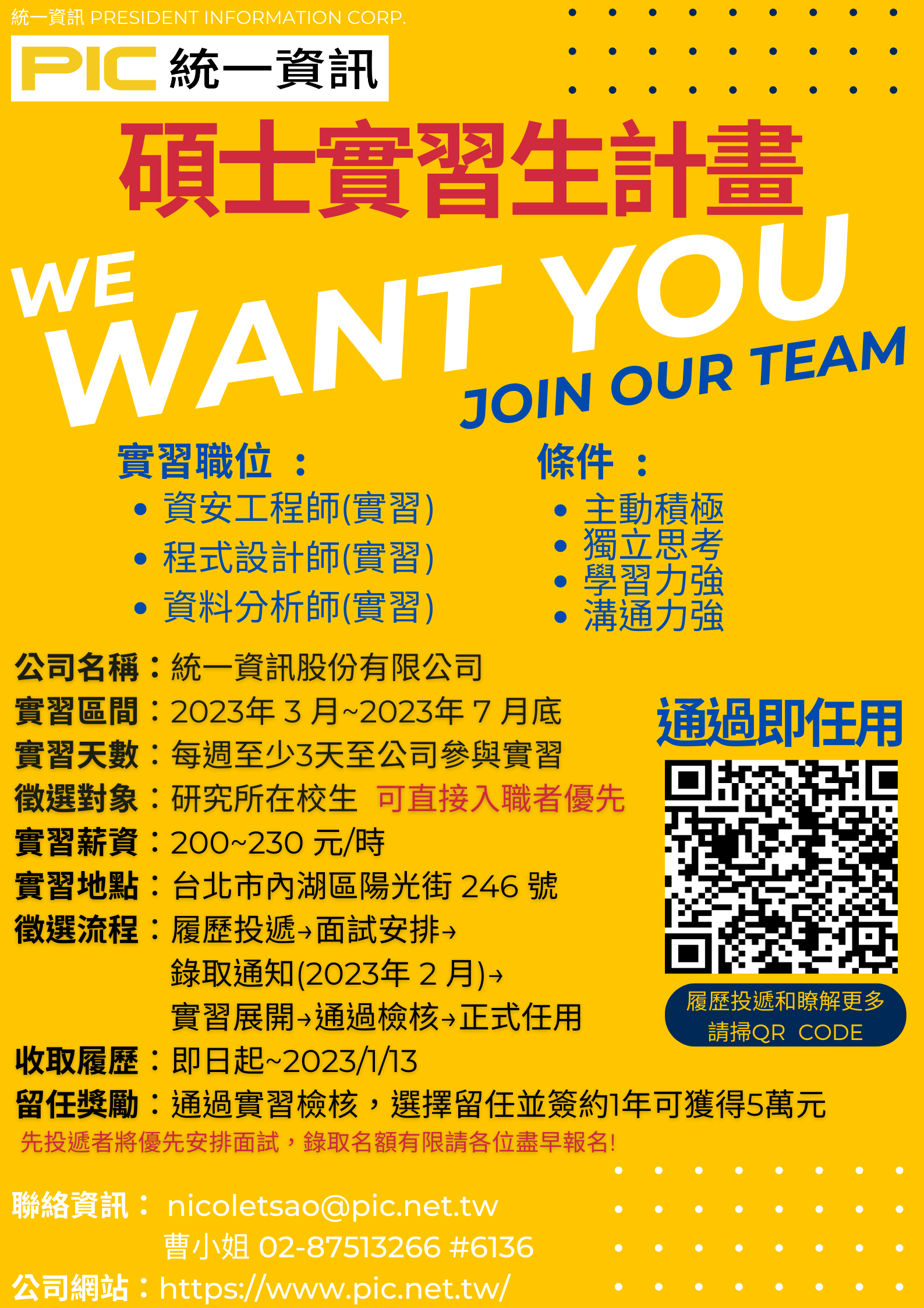 l 實習區間:2023年3月~2023年7月底(為期5個月)