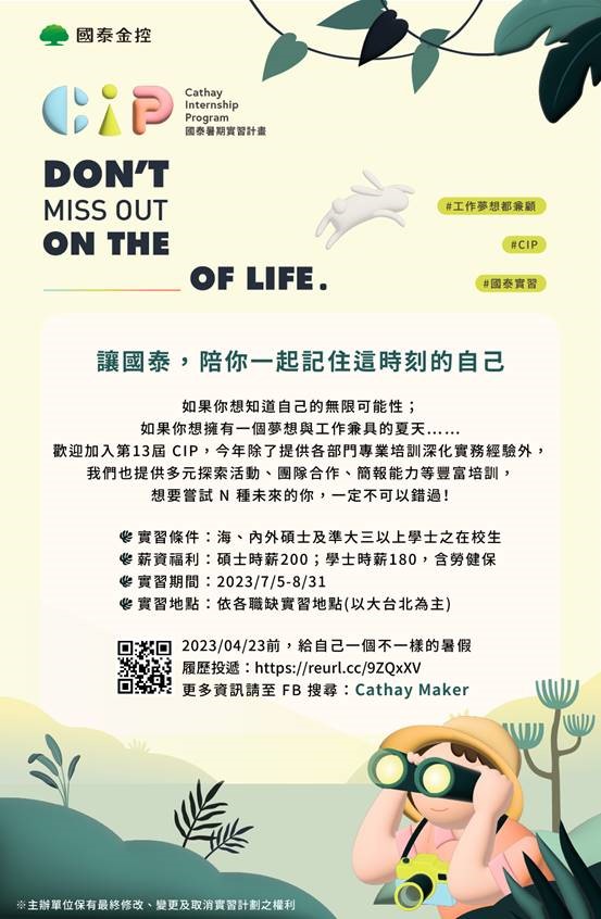 4.23(日)23:59 截止申請:https://cathaymaker.pse.is/CIP2023