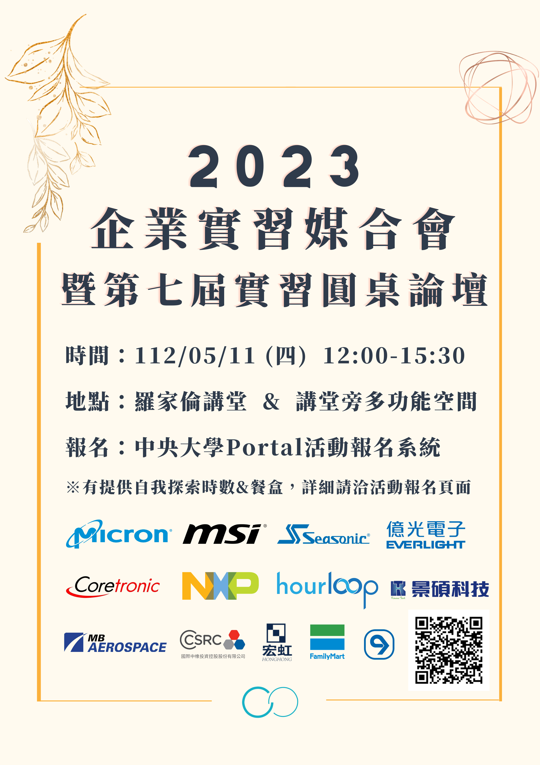 中央大學首次自辦小型實習媒合會啦!全程免費參與!