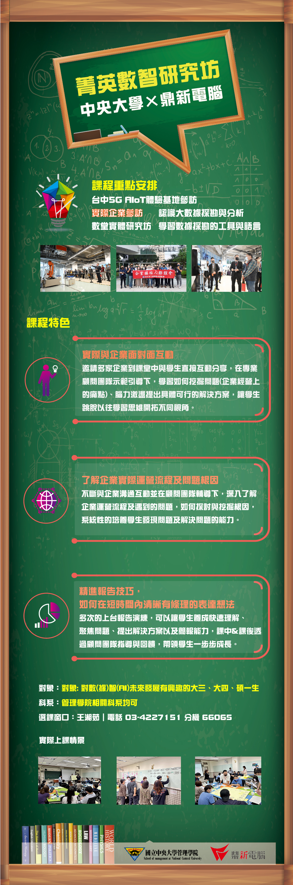 本課程由鼎新電腦顧問團隊實際指導,同學們若想對課程有進一步瞭解,可參考下方海報及附件的課程心得分享,請同學們把握加退選時間加選唷!