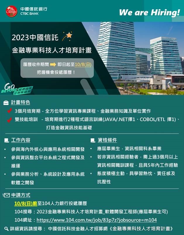 【徵才】2023中國信託金融專業科技人才培育計畫
