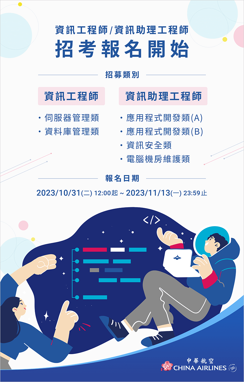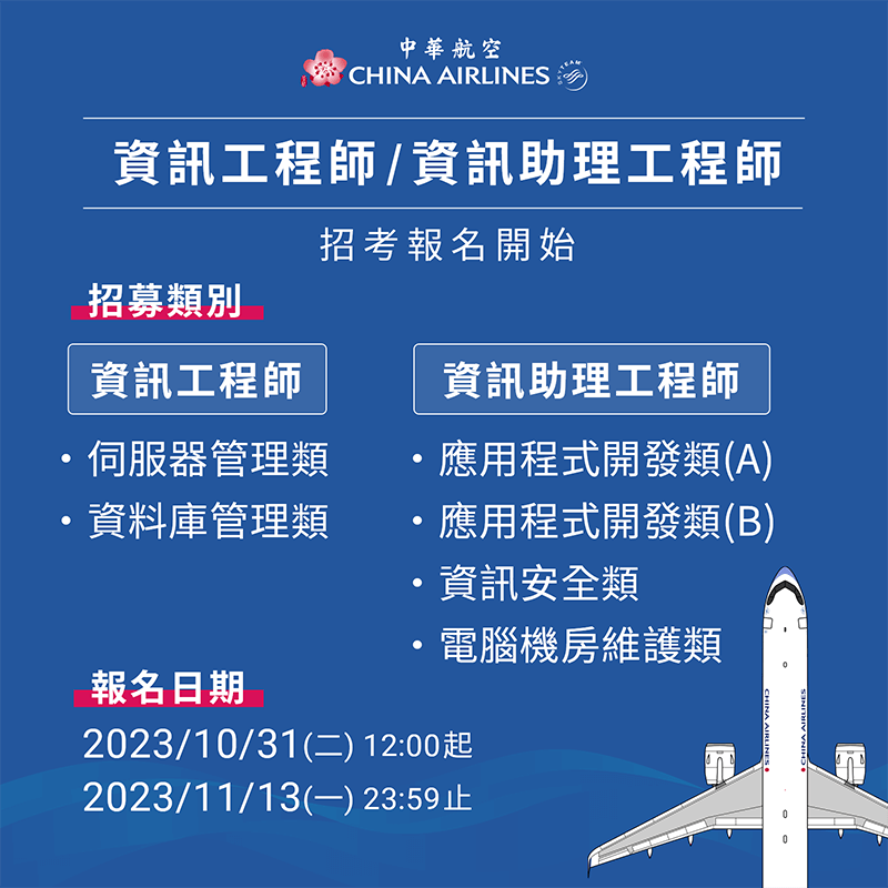 【徵才】中華航空 2023 年度第三次「資訊工程師/資訊助理工程師」招募
