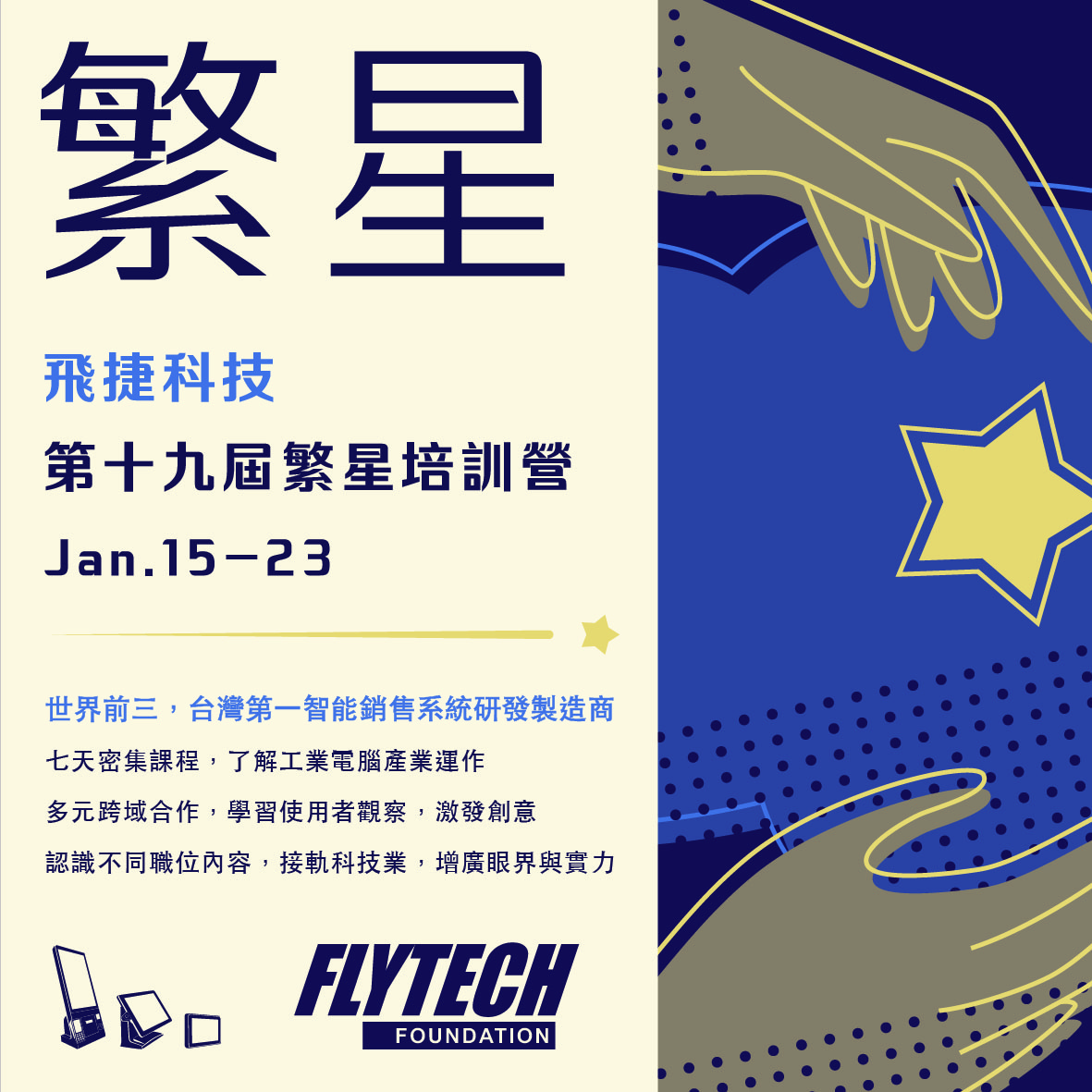 飛捷科技將於明年一月份舉辦第19屆飛捷繁星培訓營活動,活動報名於即日起~11/24(五)23:59截止。