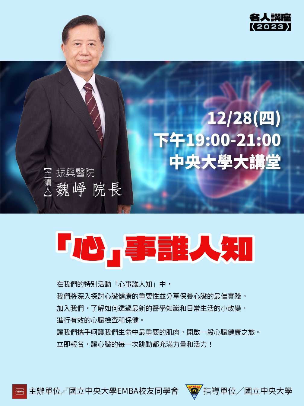 講座資訊如下,歡迎立即報名,讓心臟的每一次跳動都充滿活力與健康,關心呵護您的「心」喔!