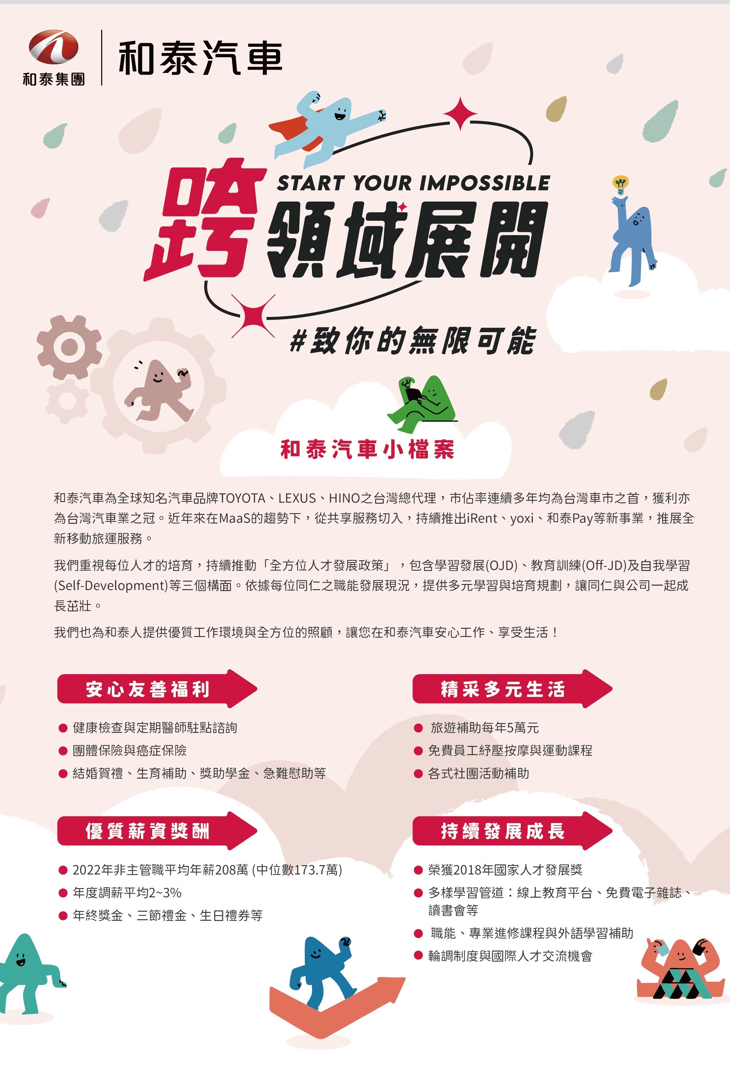 和泰汽車為TOYOTA、LEXUS、HINO總代理,以「專業、超越、創新」作為企業的經營理念,為提供顧客更周全完善之服務。