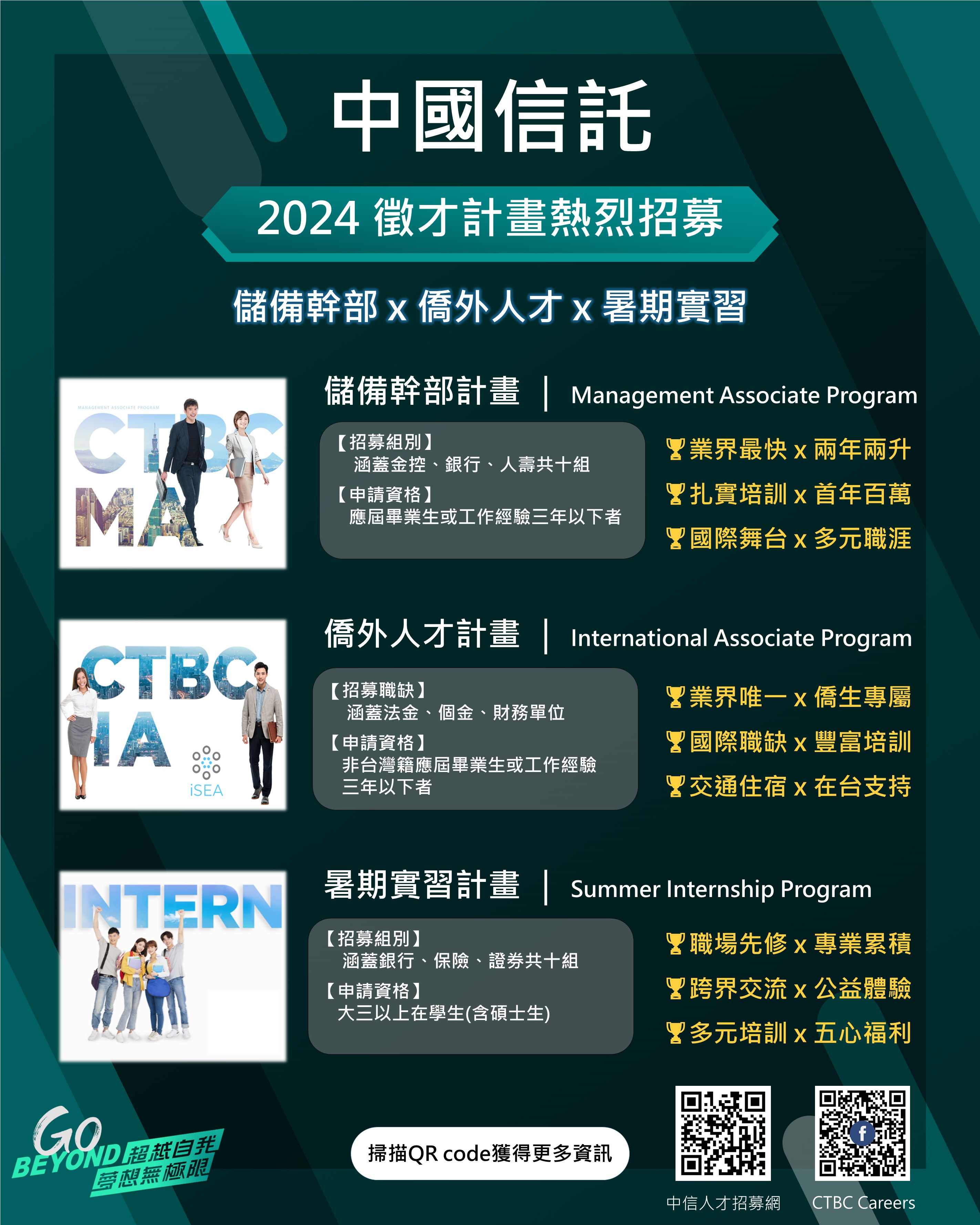 【實習】2024中國信託人才招募計畫熱烈招募中!