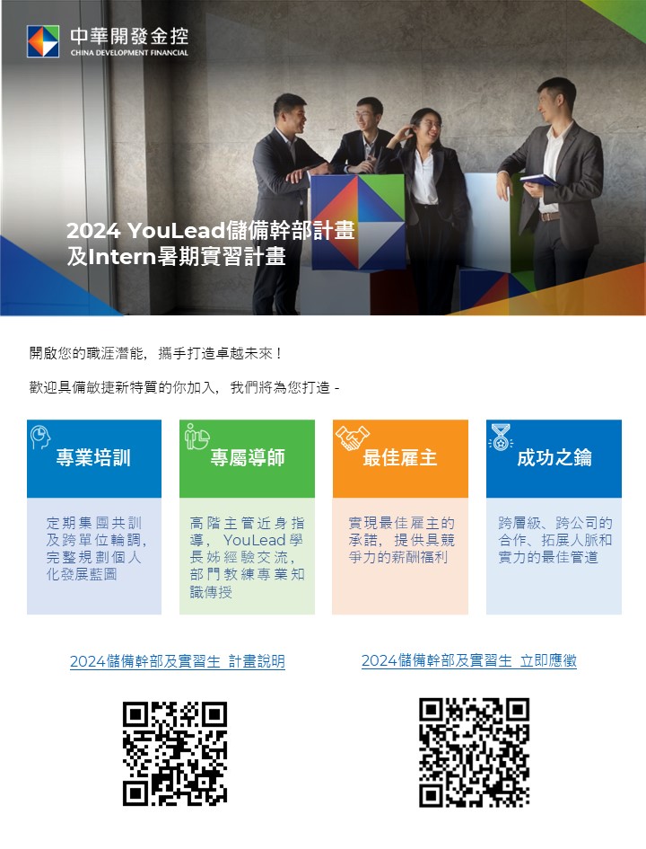 【徵才】中華開發金控集團2024 YouLead儲備幹部計畫(MA)及暑期實習招募啟動 為新世代開創職涯夢想起點!