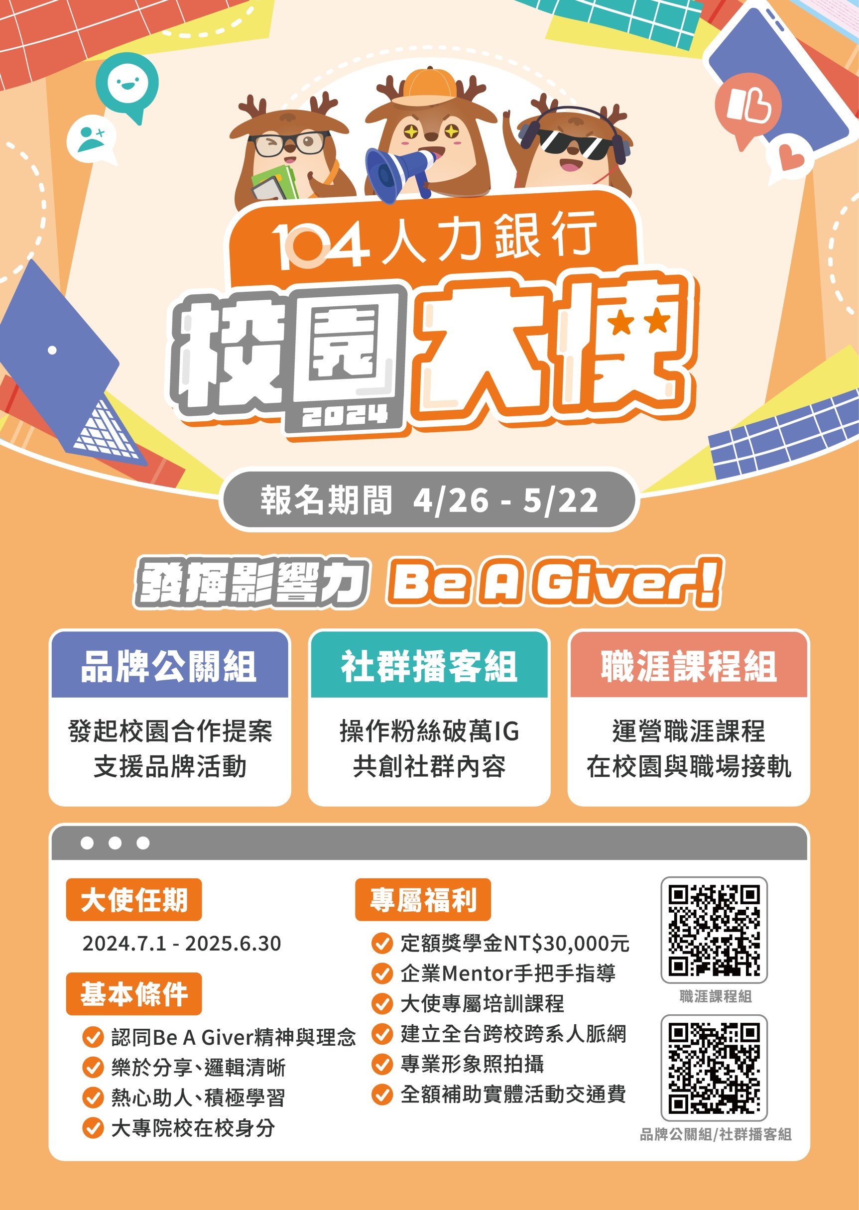 【課程】歡迎選修 113-1學期「企業優質人才學用培育課程」&104校園大使徵才