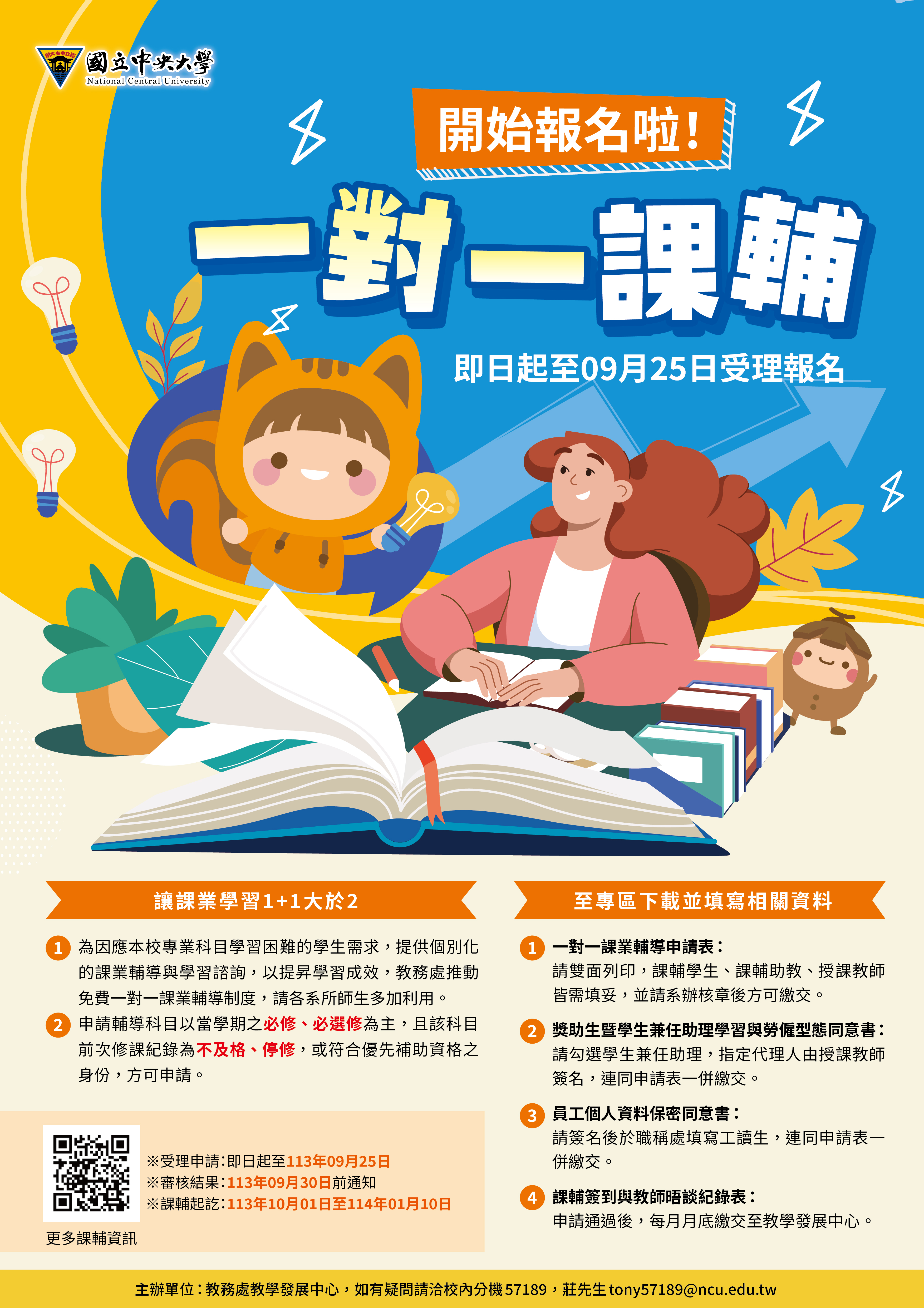 【課輔】免費一對一課業輔導申請至9/25截止,請把握機會申請唷!