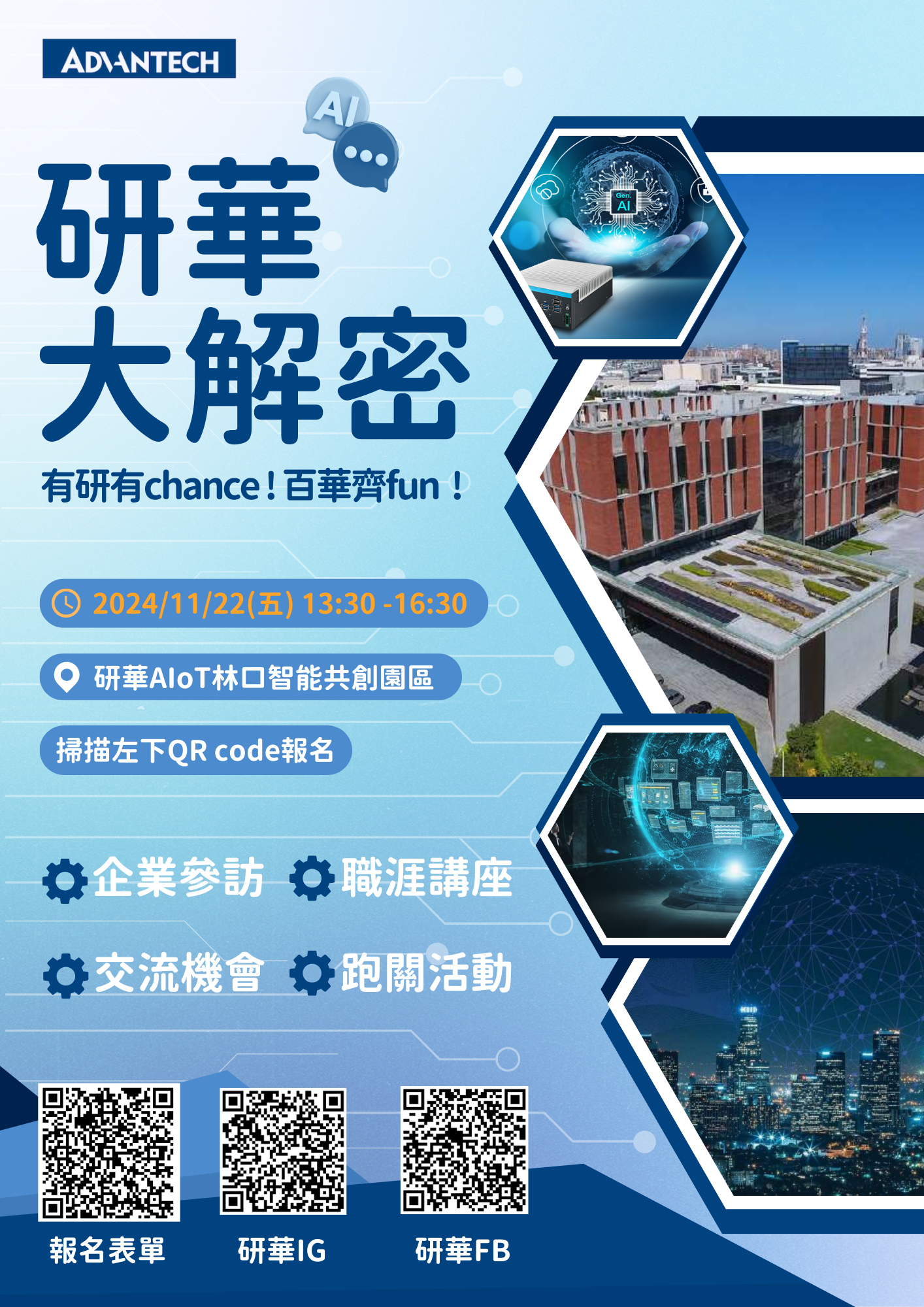 *此活動原訂10/3(四),因颱風假緣故延期至11/22(五)。原報名並已填寫延續報名表單同學無需重新填寫表單,若有相關問題歡迎私訊研華IG、FB粉專!