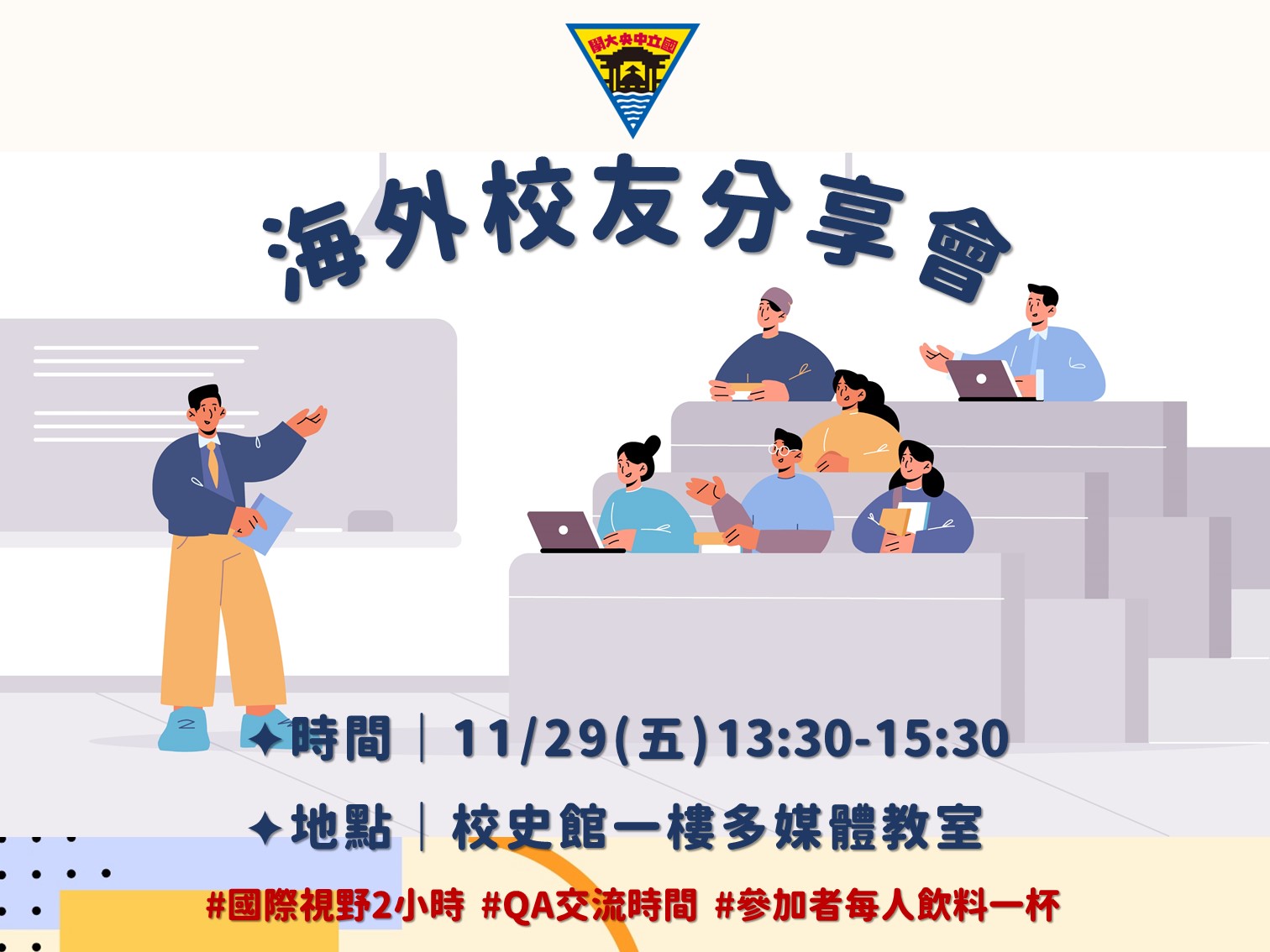 【其他】11/29(五)13:30-15:30 海外校友分享會 @校史館1F多媒體教室