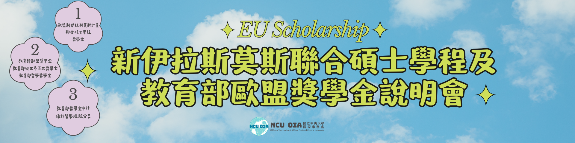 本次線上座談會主要是幫助有興趣的同學瞭解未來到歐洲進修歐盟聯合碩士學程及各類教育部獎學金之機會,還有獎學金生之經驗分享,機會難得,不要錯過哦。