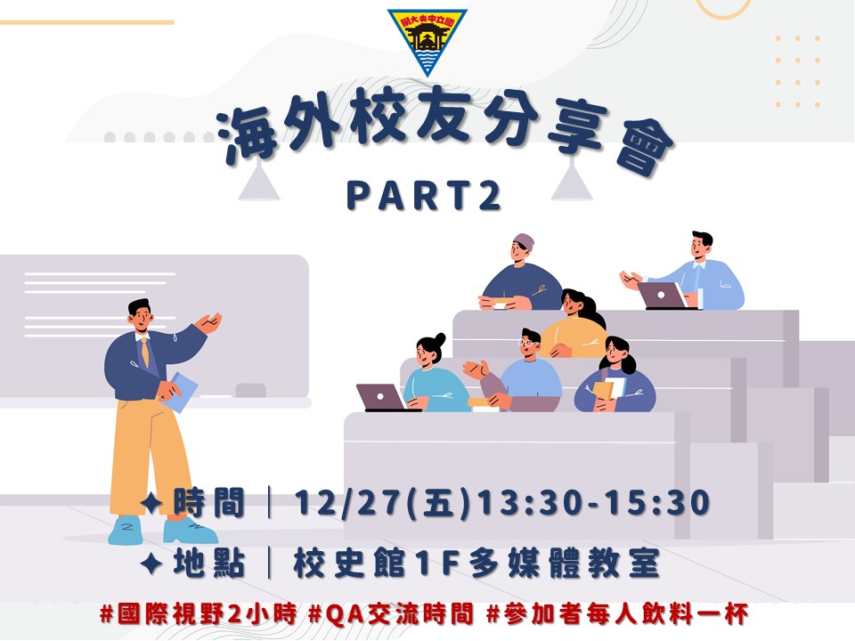 【其他】12/27(五)13:30-15:30 海外校友分享會Part2 @校史館1F多媒體教室