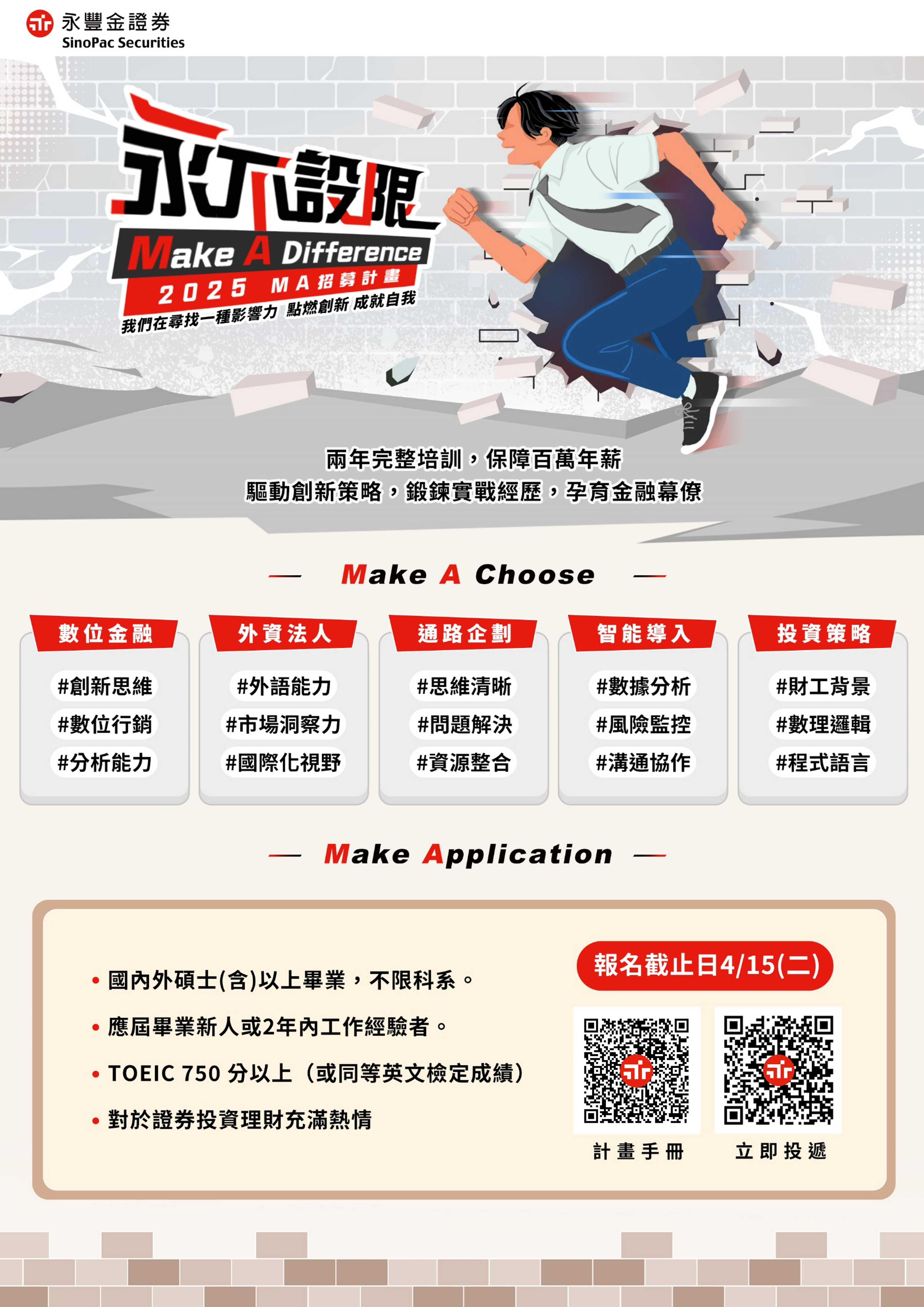 【永豐金證券|2025策略人才MA計畫】永不設限 Make A Difference!