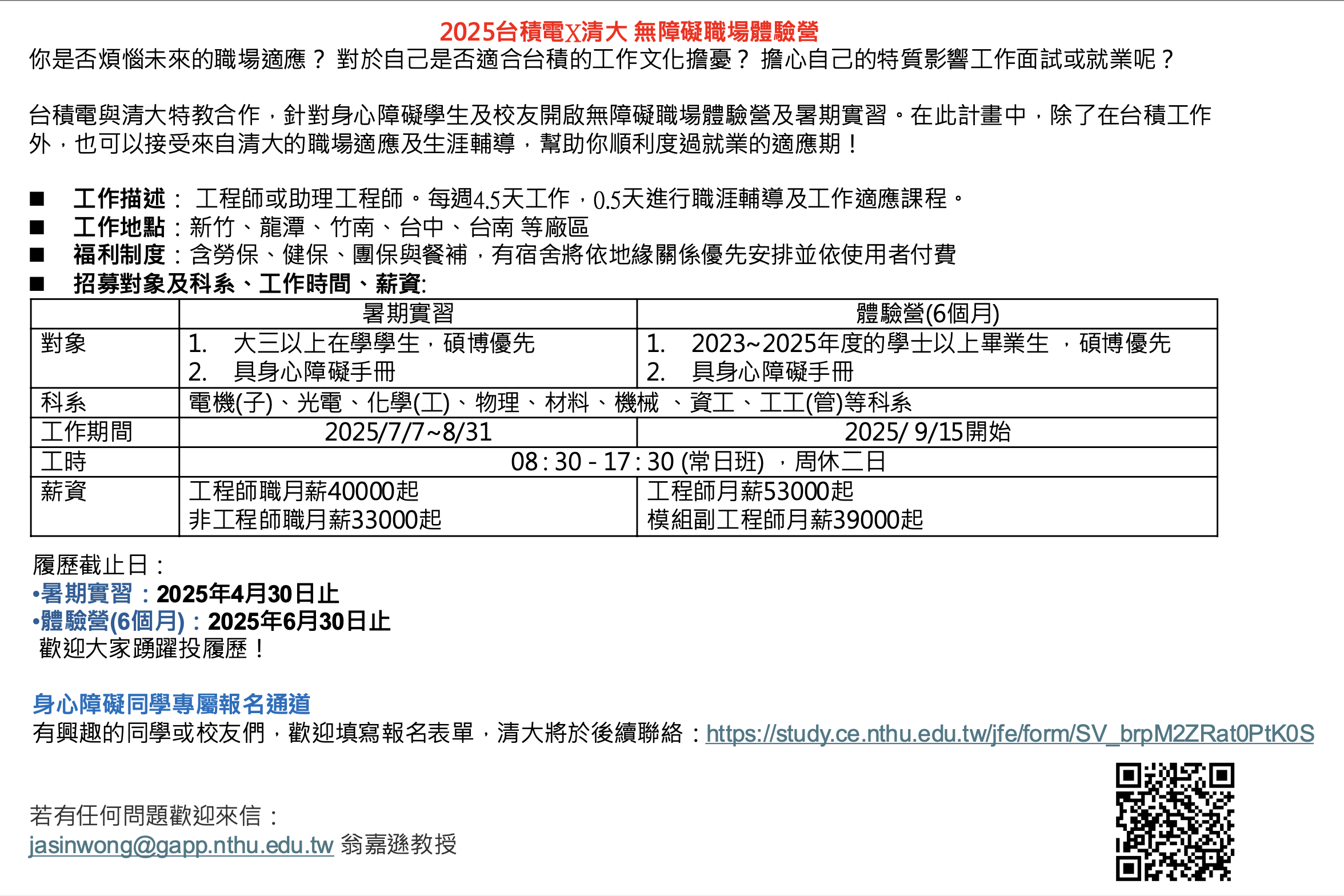 以下爲 台積電 的詳細計畫說明。鼓勵大家踴躍投遞履歷喔!