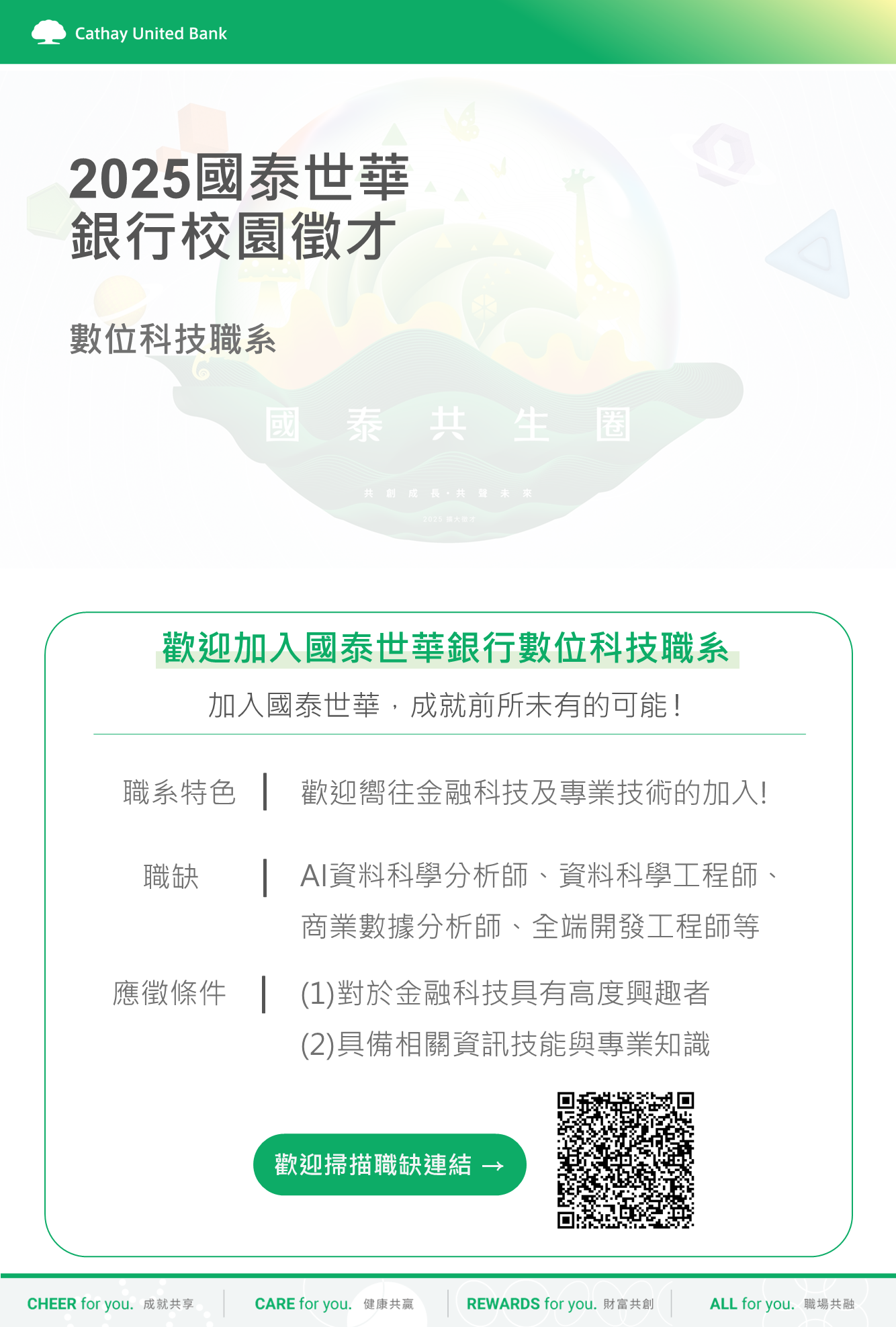 【2025校園徵才專場企業說明會】- 03/25國泰世華銀行MA計畫/校園徵才