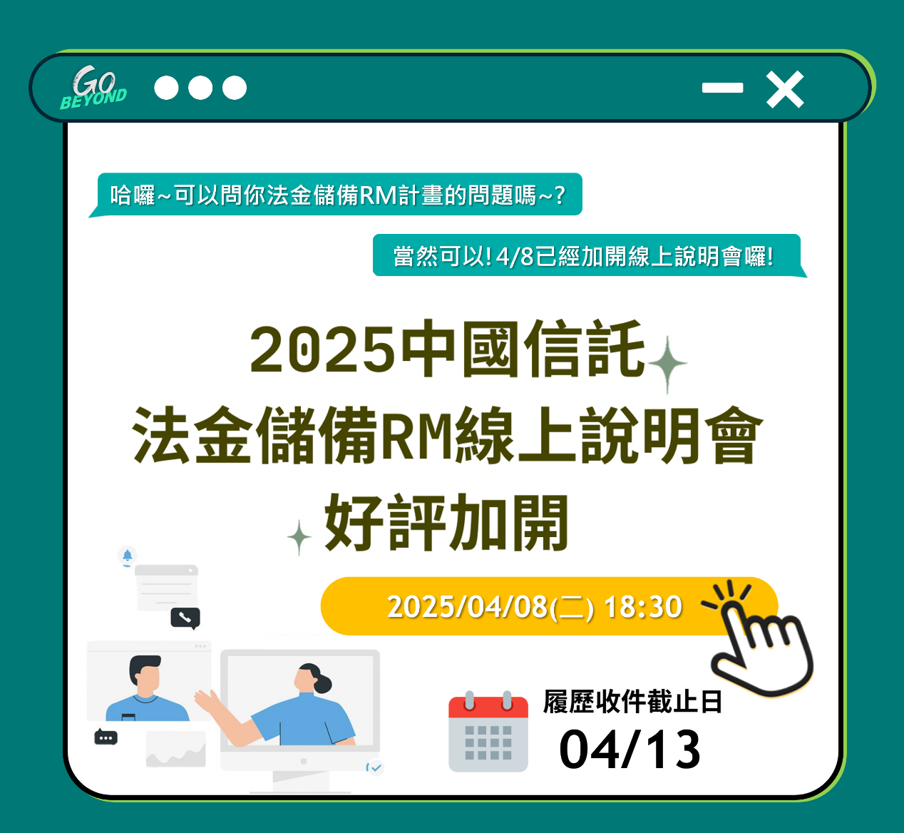 【徵才】中國信託法人金融儲備RM計畫 4/8(二) 18:30 線上直播說明會