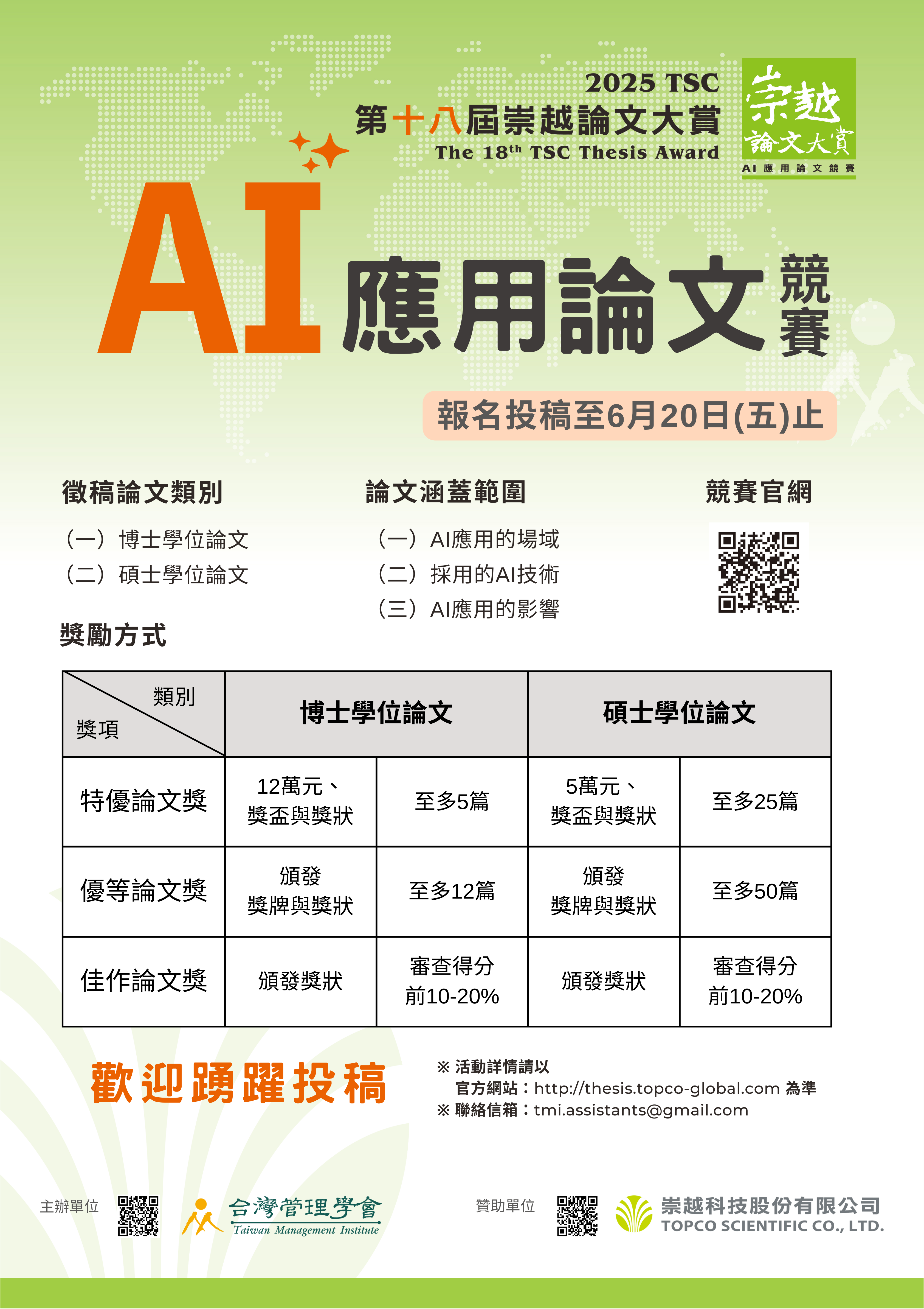 【競賽】第十八屆(2025)崇越論文大賞:AI應用論文競賽