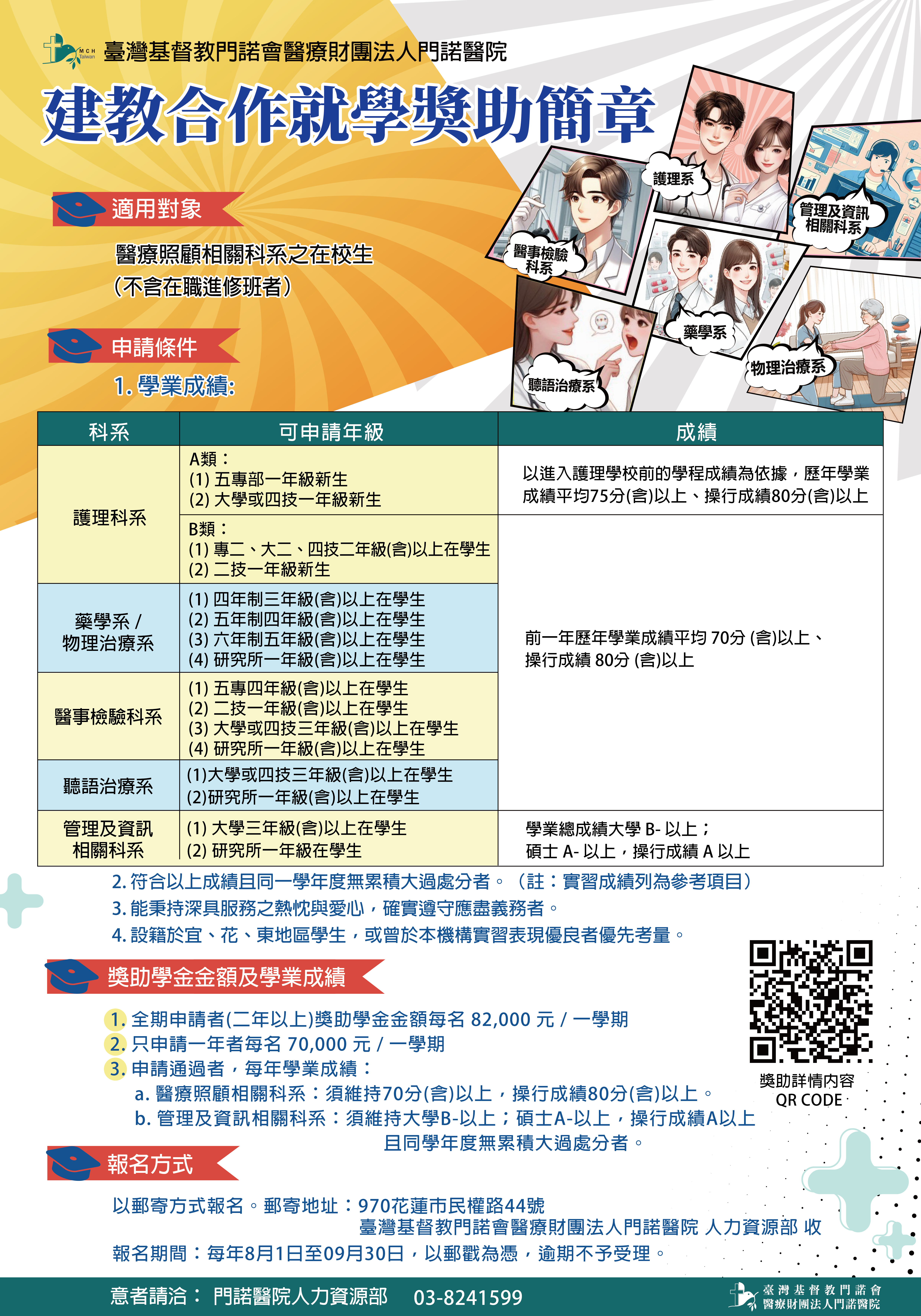 ●注意事項:獲獎助者需與門諾醫院簽訂返鄉服務合約,畢業後於本院服務年限與補助年限相符