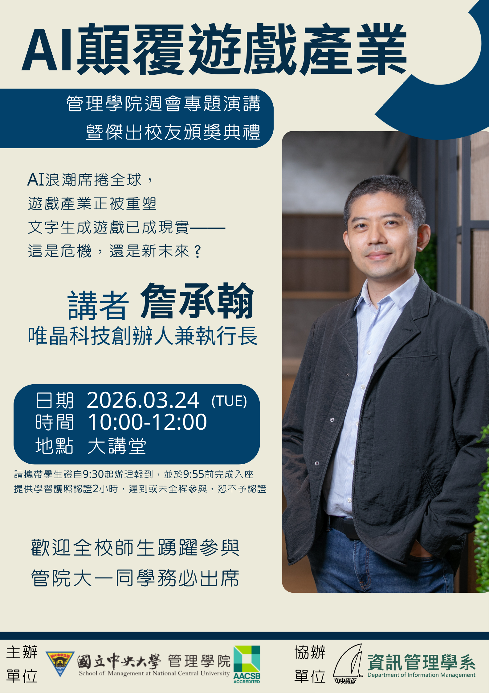 【演講】管院週會:AI顛覆遊戲產業(暨傑出校友頒獎典禮)