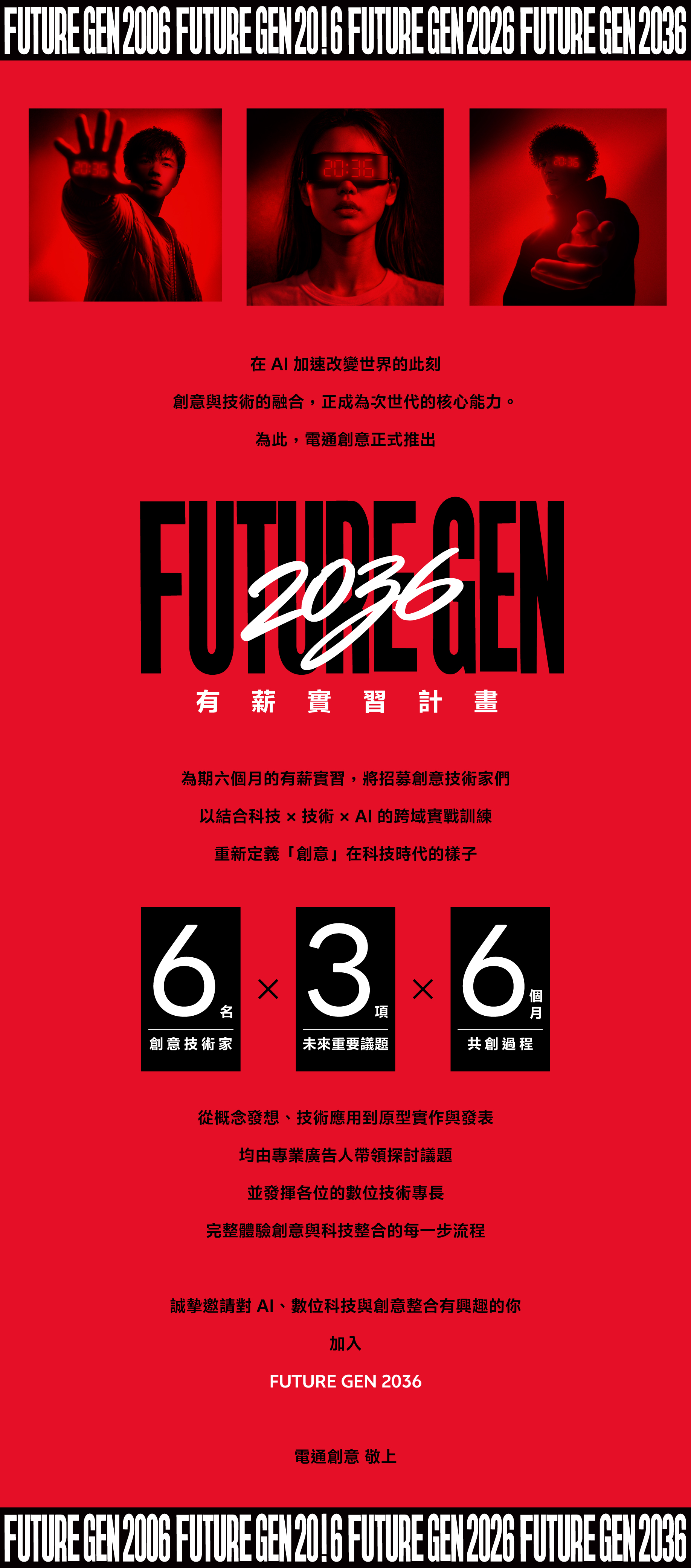 基於這樣的時代背景,電通集團推出「FUTURE GEN 2036」,一個為期六個月、結合「創意 × 技術 × AI」的跨域實習計畫。
