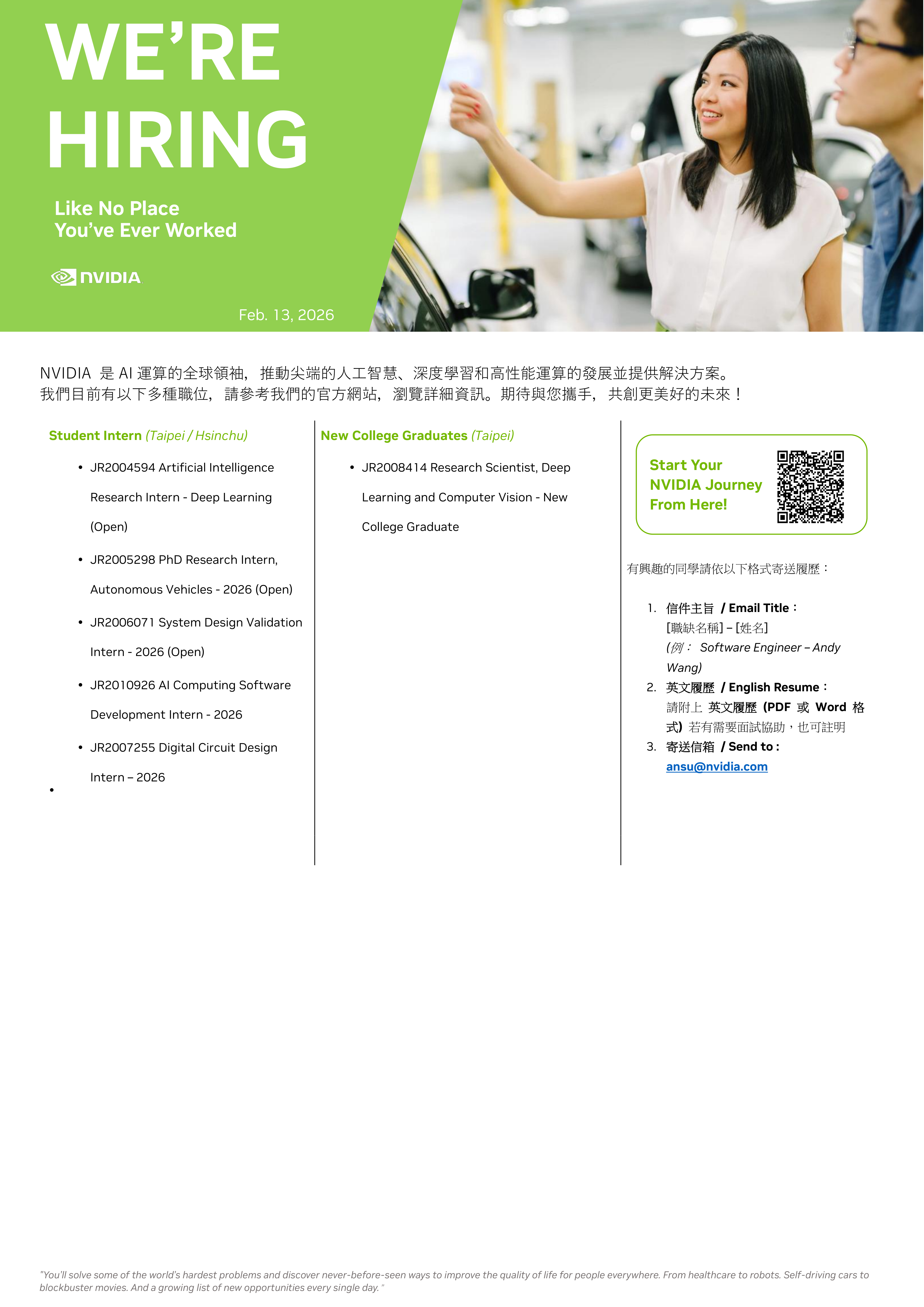 可投遞公司:美光(Micron)|台積電|高通(Qualcomm)|NVIDIA | Google