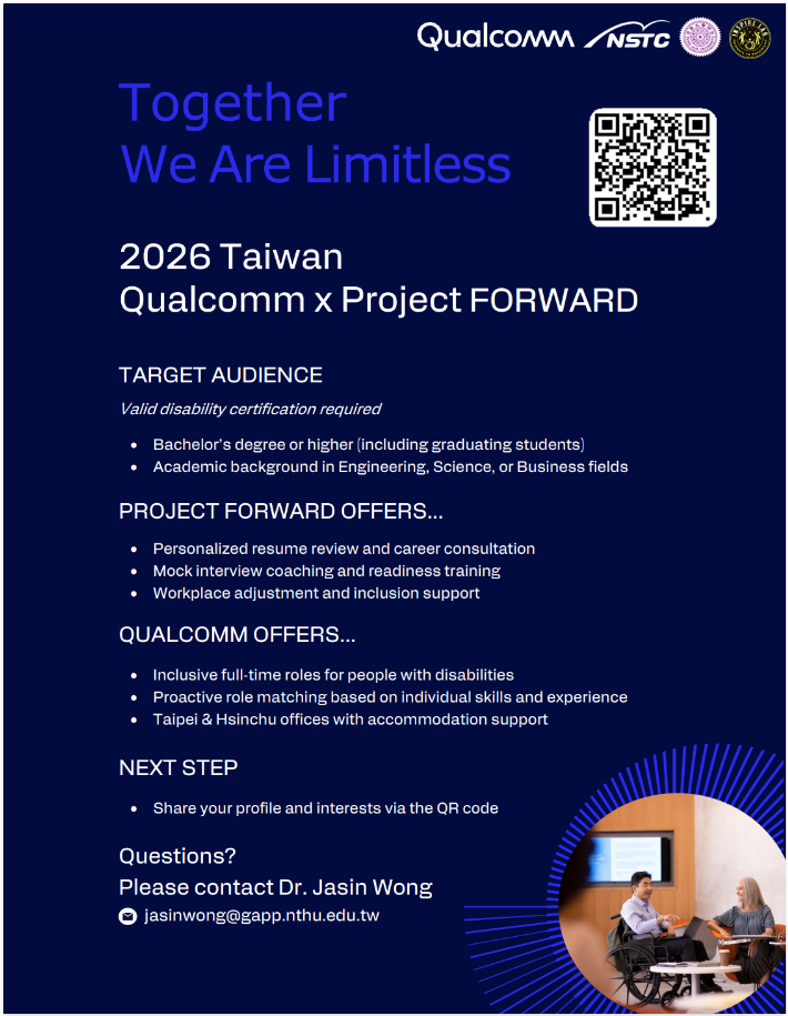 - 大四以上/碩士/博士生 或 2018-2026已畢業校友