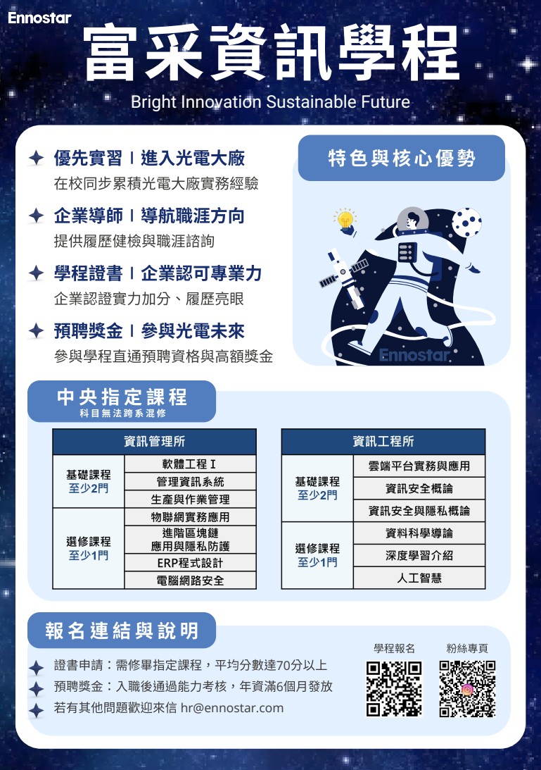 →實習機會:參與本學程之學生,甄選後優先錄取富采光電實習職缺